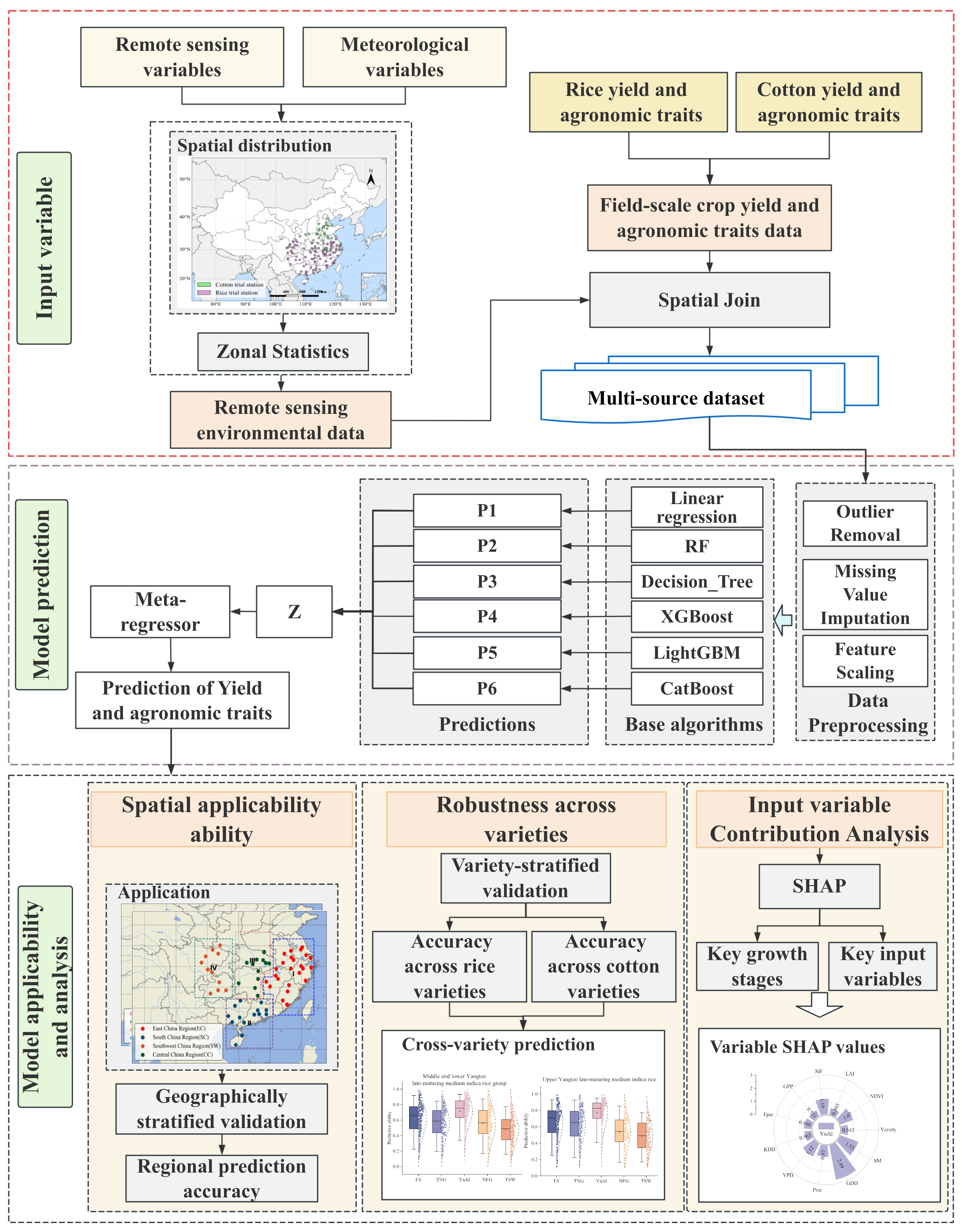 APA StyleQin, Y., Tauqir, M., Yu, X., Zheng, X., Jiang, X., Xu, N., & Zhang, J. (2026). Predicting Multiple Traits of Rice and Cotton Across Varieties and Regions Using Multi-Source Data and a Meta-Hybrid Regression Ensemble. Sensors, 26(2), 375. https://doi.org/10.3390/s26020375