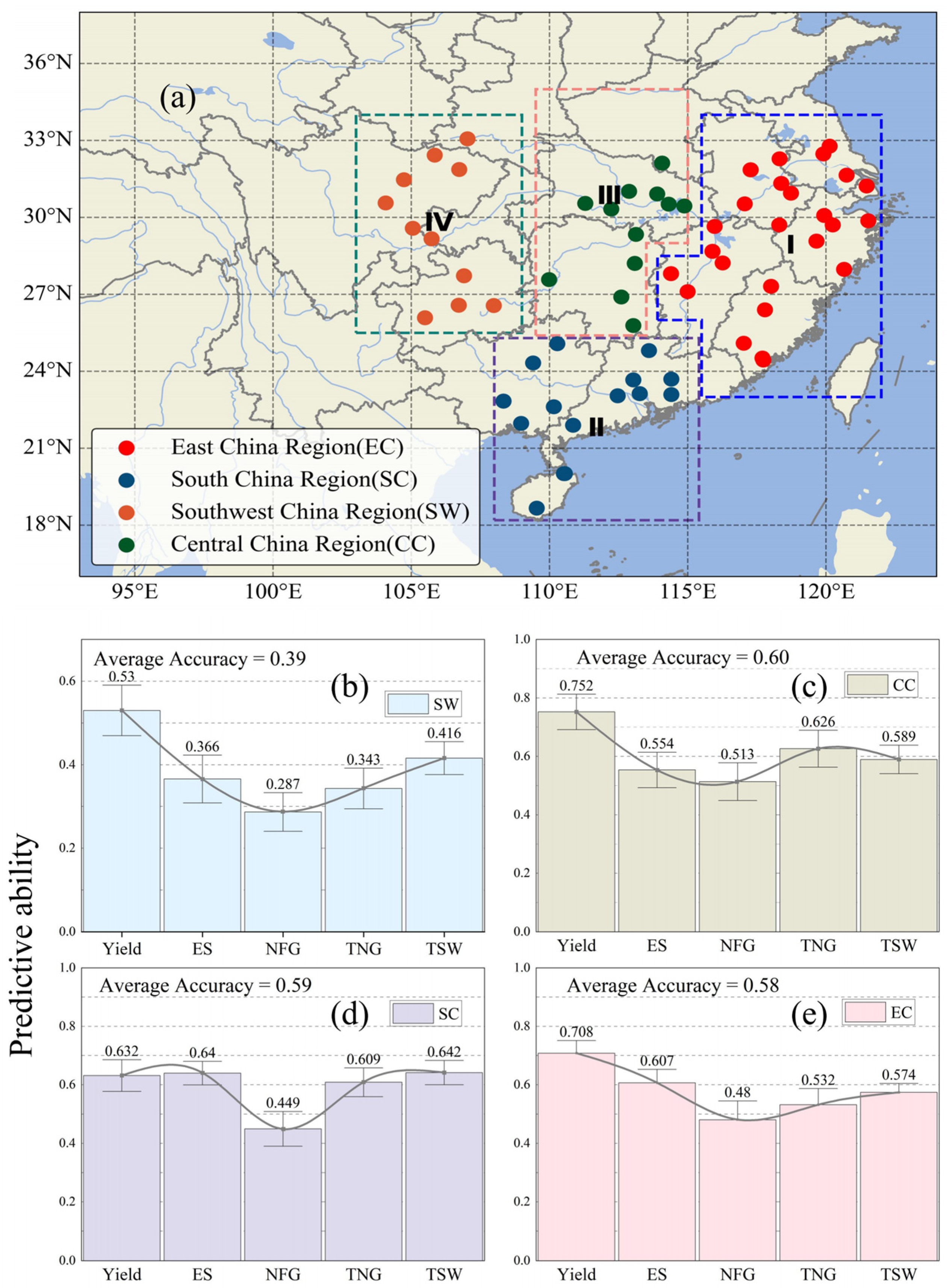 3.3.1. Spatial Applicability for Major Rice Traits