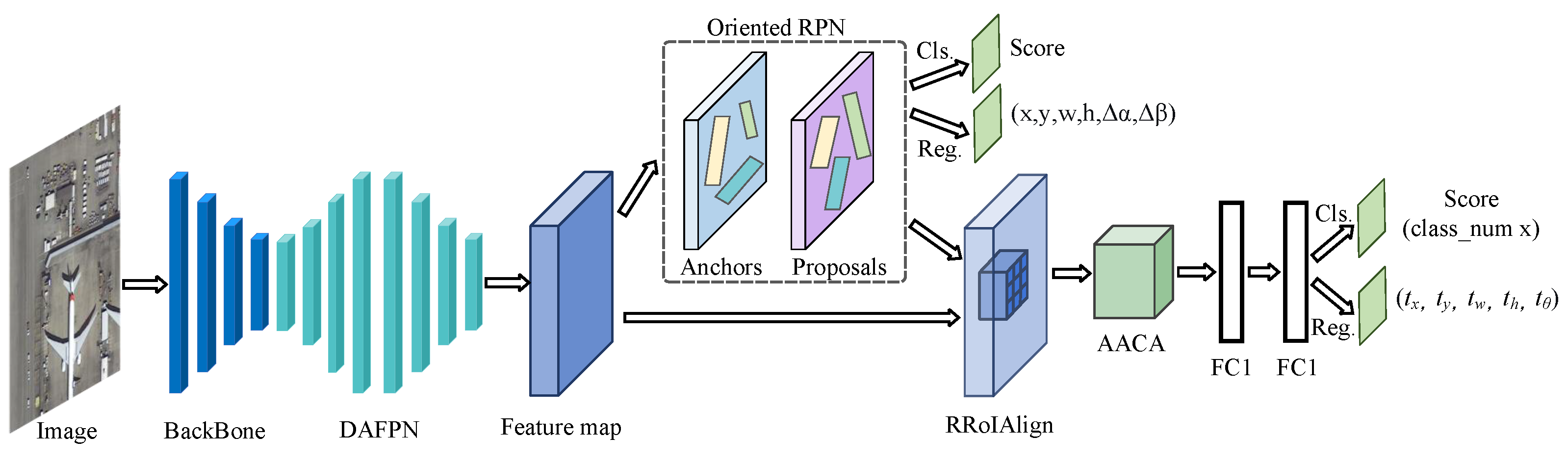 | RSFPN (Ours) | Two-stage (Enhanced) | DAFPN | Rotated RoIAlign+AACA | GC-MTL | Solves the above via unified design |