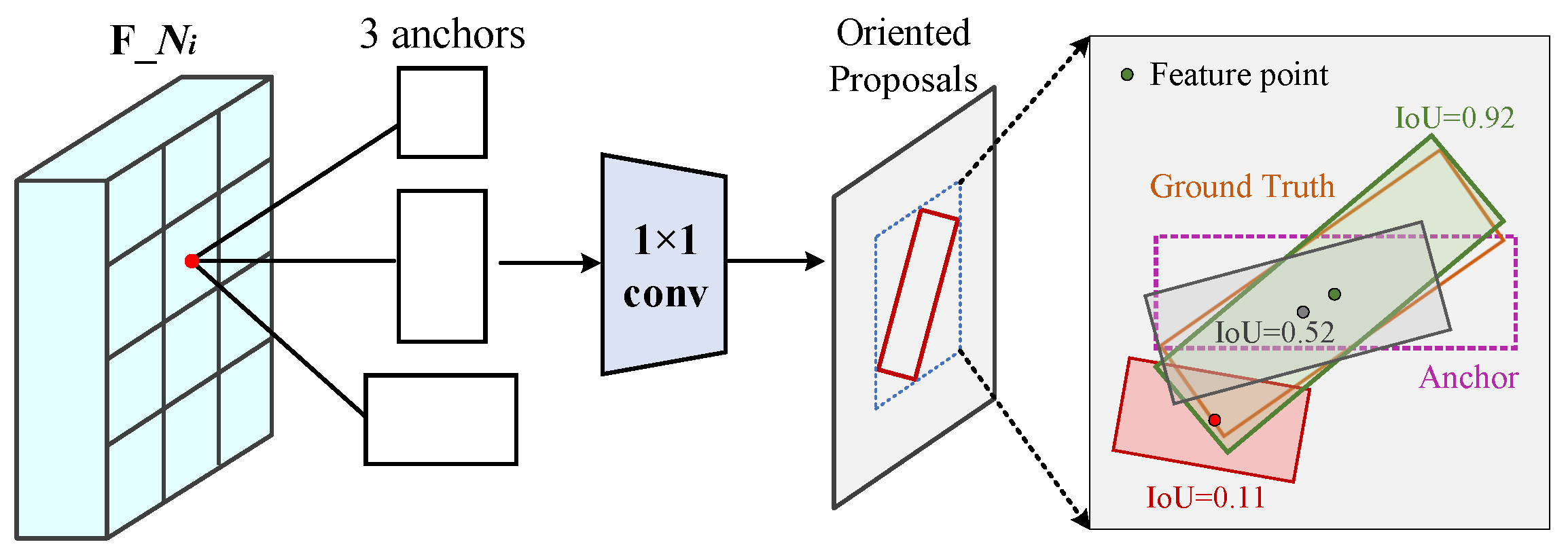 - Cheng, G.; Wang, J.; Li, K.; Xie, X.; Lang, C.; Yao, Y.; Han, J. Anchor-free oriented proposal generator for object detection. IEEE Trans. Geosci. Remote Sens. 2022, 60, 1–11. [Google Scholar] [CrossRef]