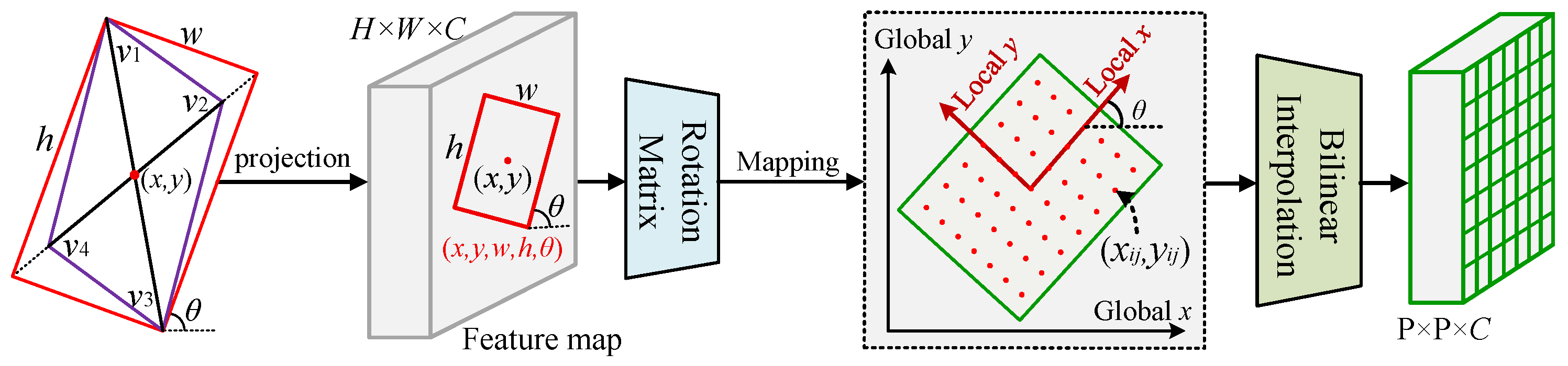 - Ding, J.; Xue, N.; Long, Y.; Xia, G.S.; Lu, Q. Learning RoI transformer for oriented object detection in aerial images. In Proceedings of the IEEE/CVF Conference on Computer Vision and Pattern Recognition, Long Beach, CA, USA, 15–10 June 2019; pp. 2849–2858. [Google Scholar]