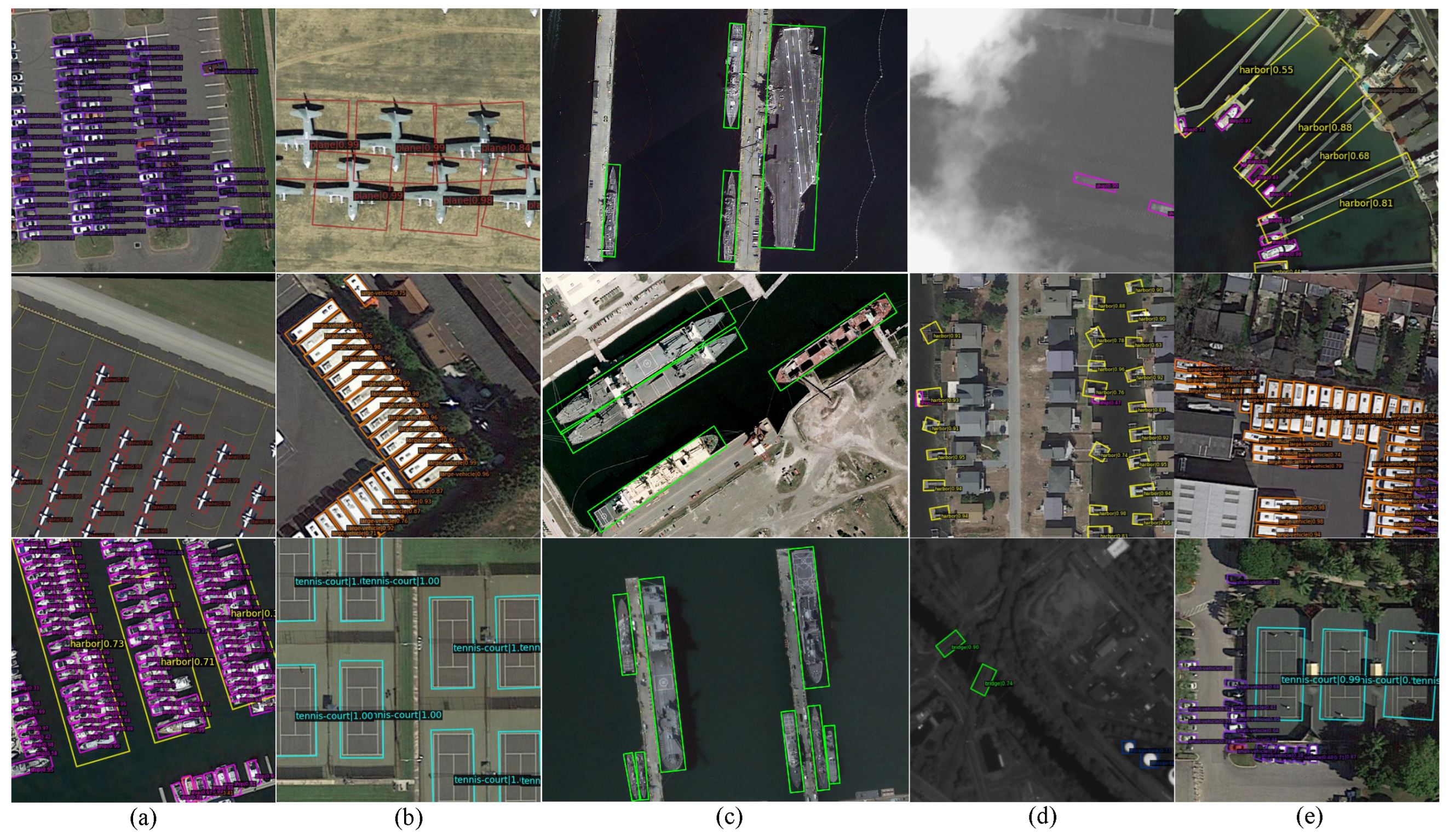 - Xia, G.S.; Bai, X.; Ding, J.; Zhu, Z.; Belongie, S.; Luo, J.; Datcu, M.; Pelillo, M.; Zhang, L. DOTA: A large-scale dataset for object detection in aerial images. In Proceedings of the IEEE Conference on Computer Vision and Pattern Recognition, Salt Lake City, UT, USA, 18–22 June 2018; pp. 3974–3983. [Google Scholar]