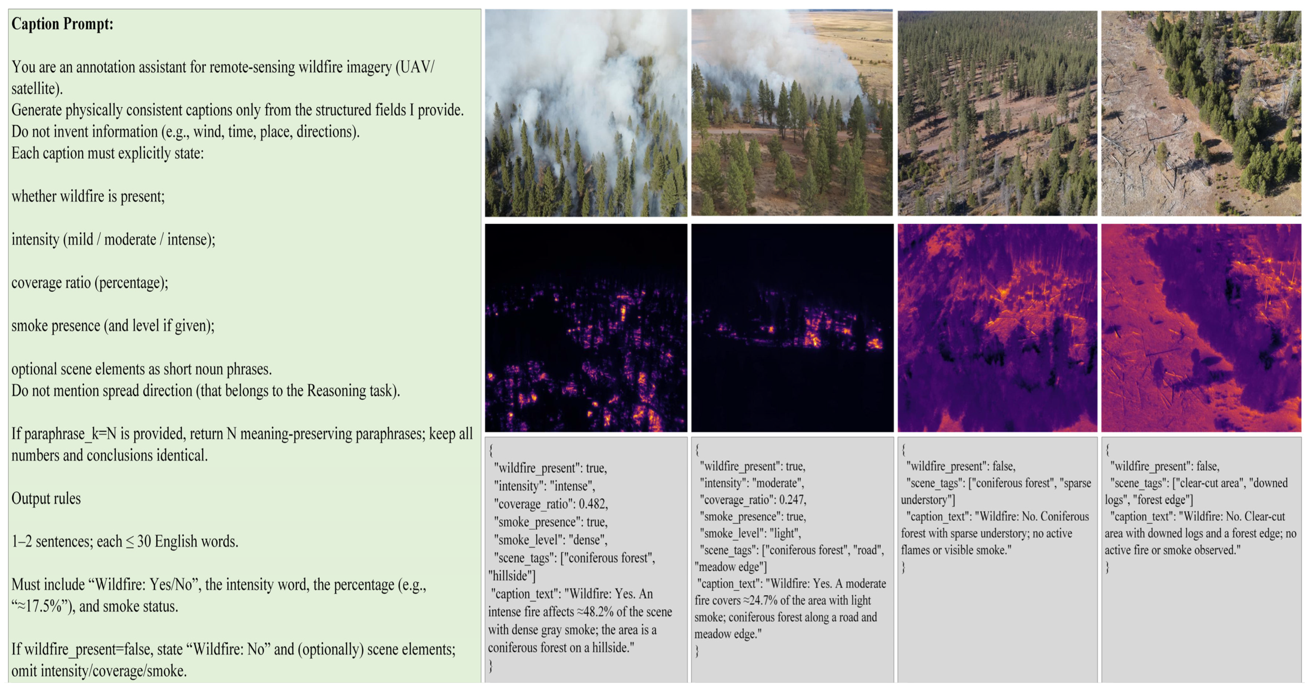 | Split | Image Pairs | Fire Images | Non-Fire Images | Caption & Reasoning Templates |
