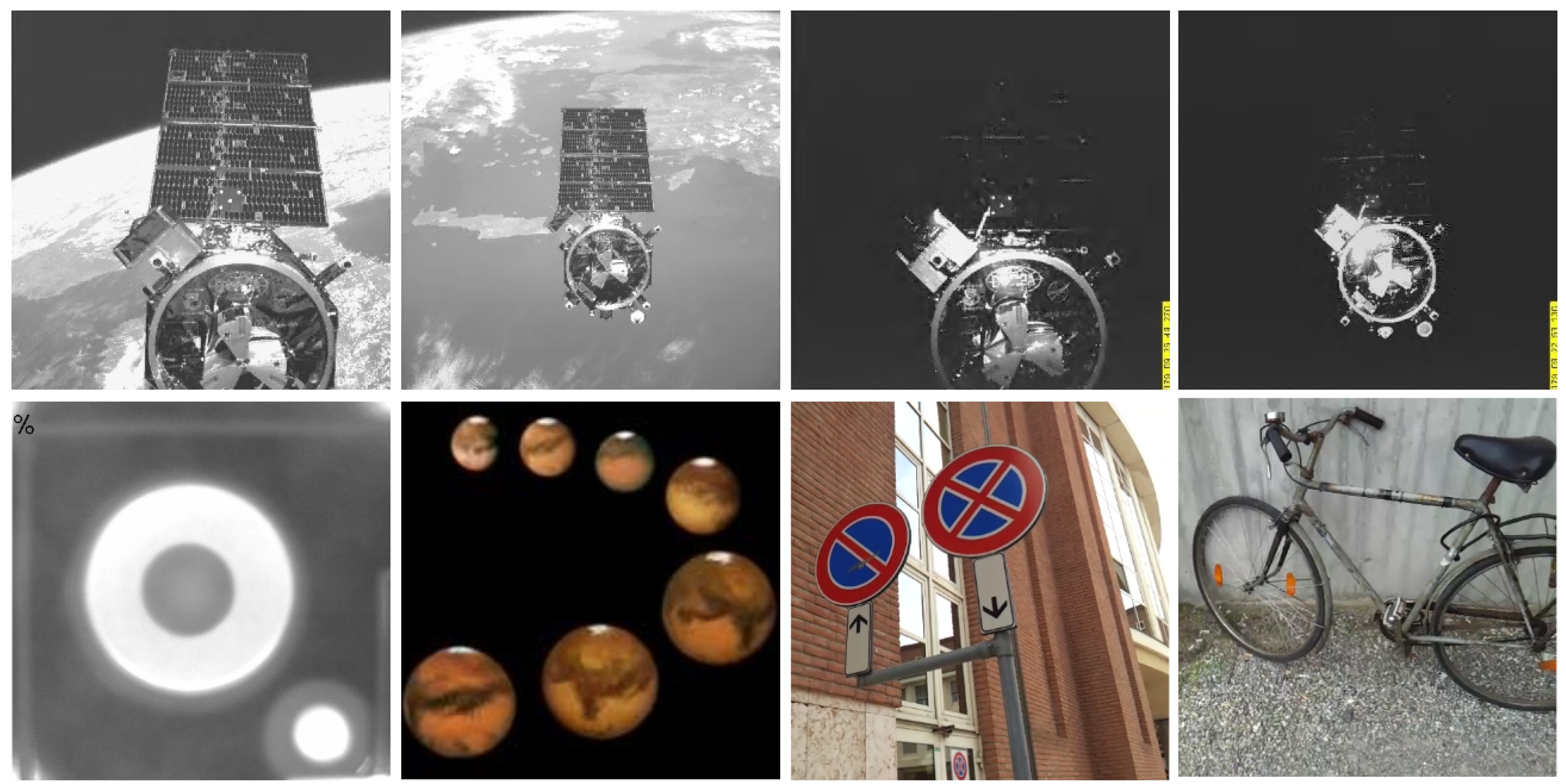 23] consists of satellite images captured by the OEDMS camera of the NextSat spacecraft, with a resolution of 318 × 318. All images are affected by illumination and noise. Satellite 2 dataset [
