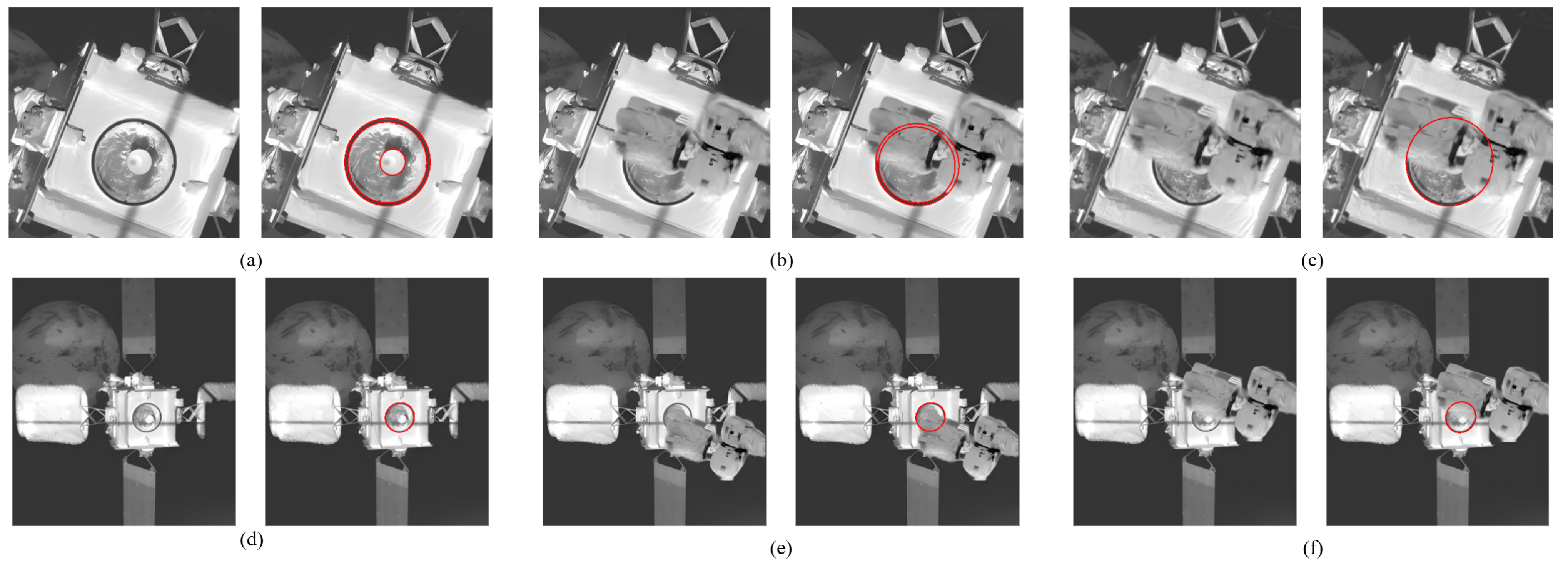 Figure 8. It can be seen that in the infrared images captured by NFOV, the docking ring ellipse is larger. In this case, our algorithm can still reliably detect the docking ring ellipse even when occlusion exceeds