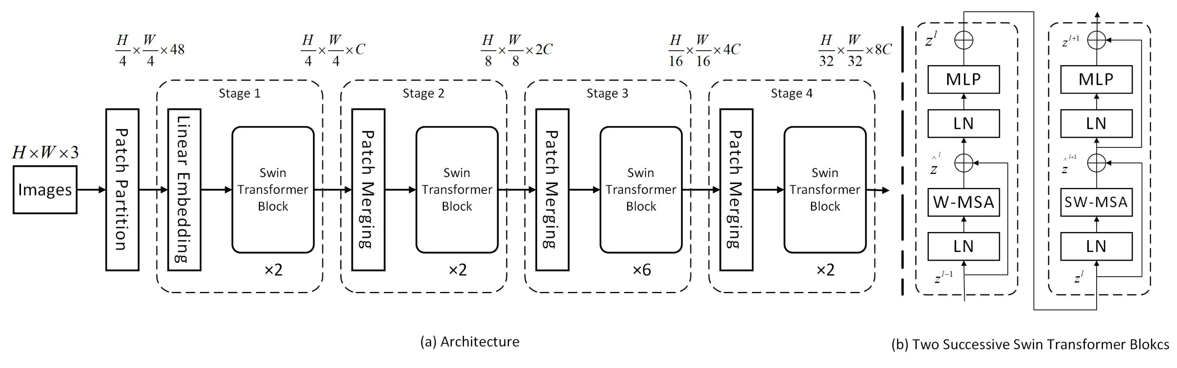 30] is a Transformer-based visual backbone network proposed in 2021. Compared to traditional convolutional neural networks (CNNs), Swin Transformer can more flexibly model global dependencies and demonstrates outstanding performance across multiple visual tasks.