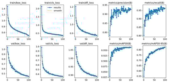 Figure 6 depicts the learning curves for the object detection model throughout its 100-epoch training cycle. The metrics are described in Table 2.