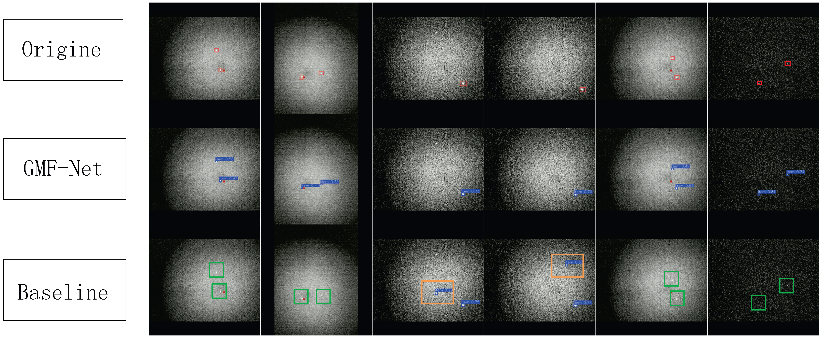 - The combination of all three modules delivers the highest detection accuracy and recall, with an extremely compact model and excellent real-time performance, validating the overall effectiveness of the GMF-Net design.