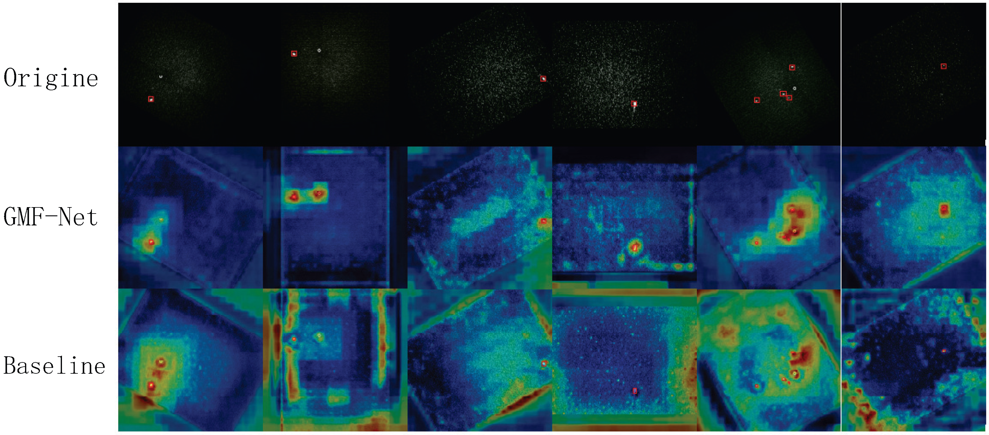 - For clustered targets, GMF-Net’s hotspots align closely with true positions, while YOLOv8 generates multiple false alarms in background regions.