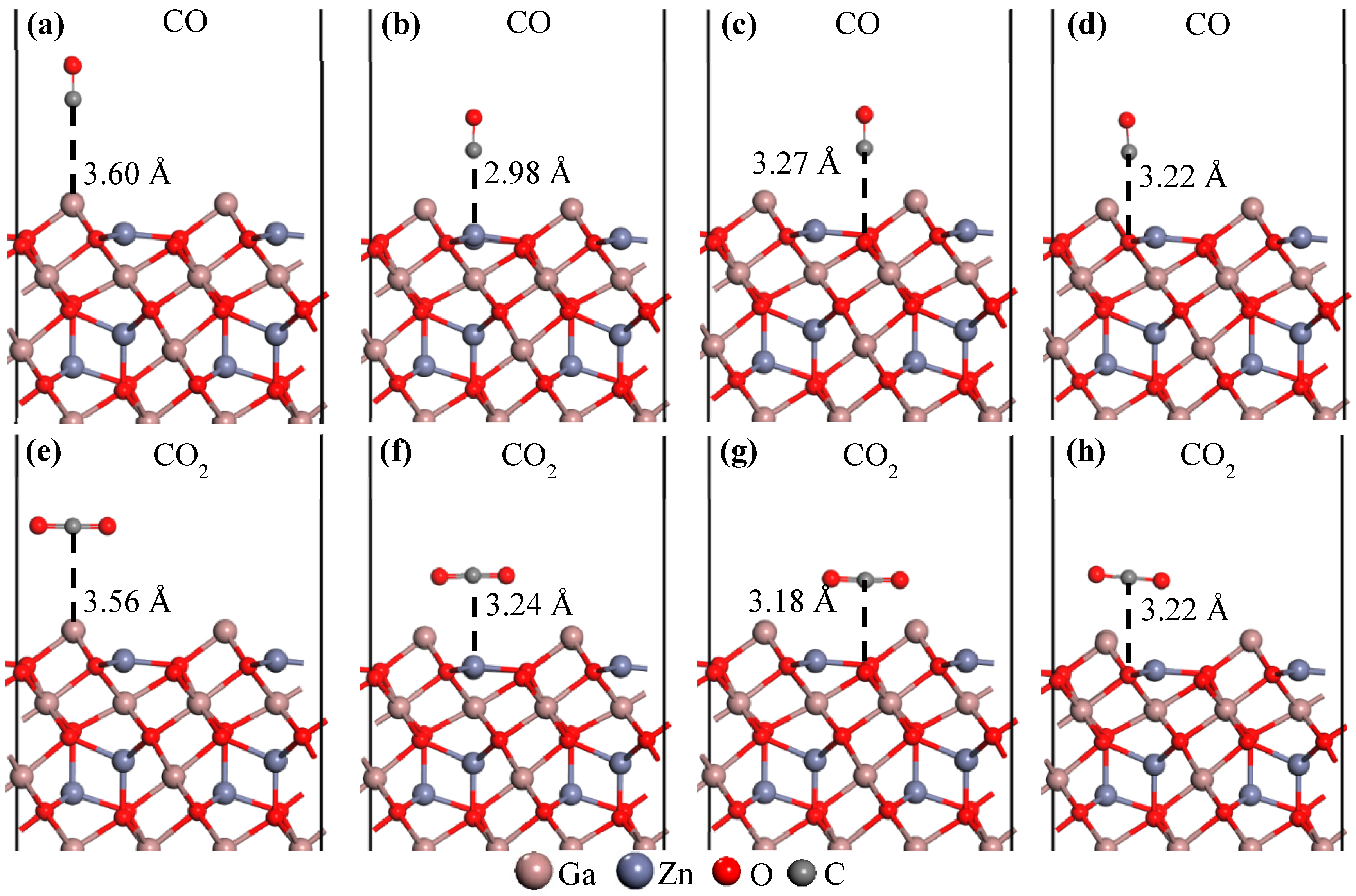 3.1.1. NO, CO, CO2 Molecule Adsorption