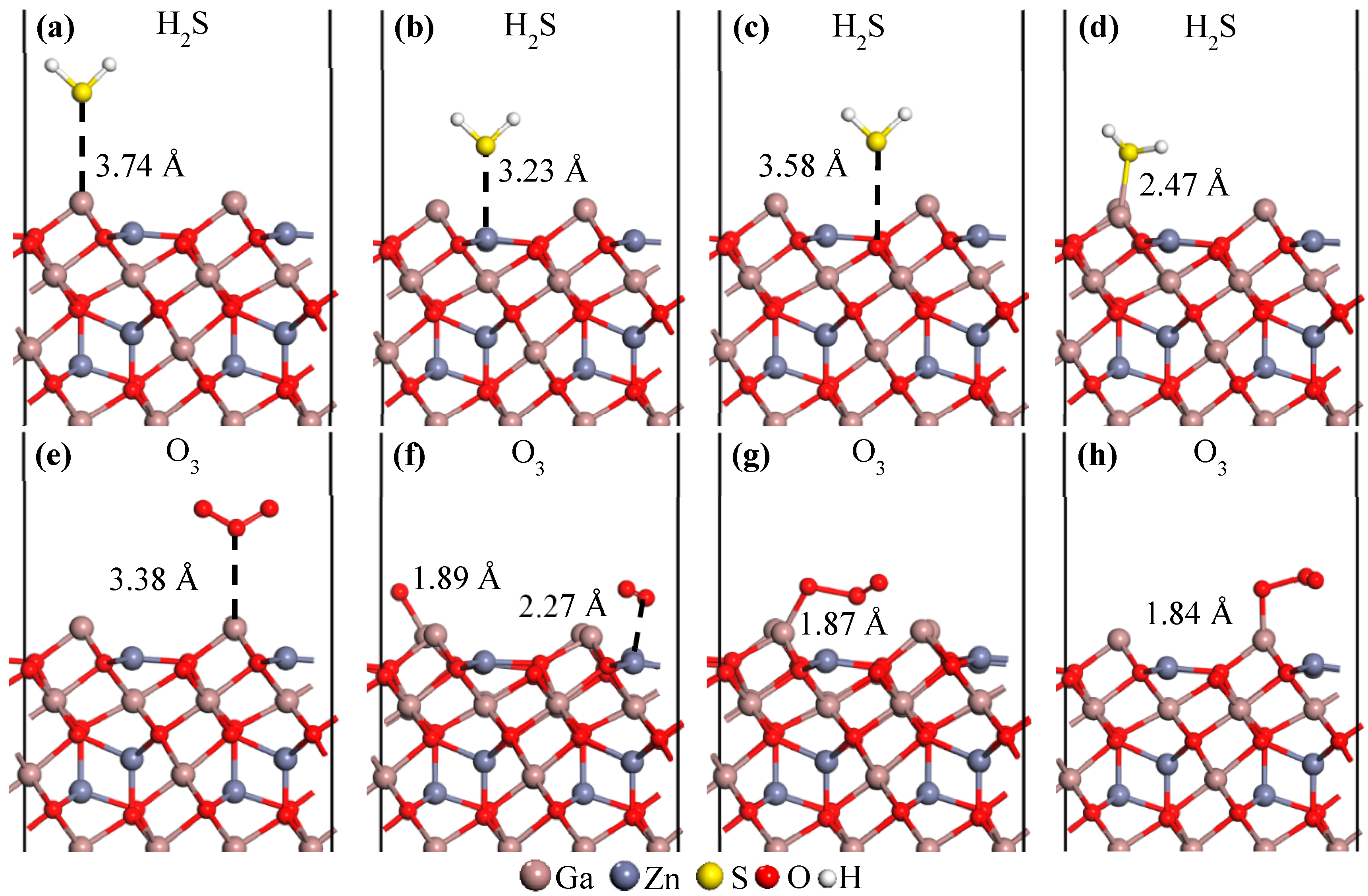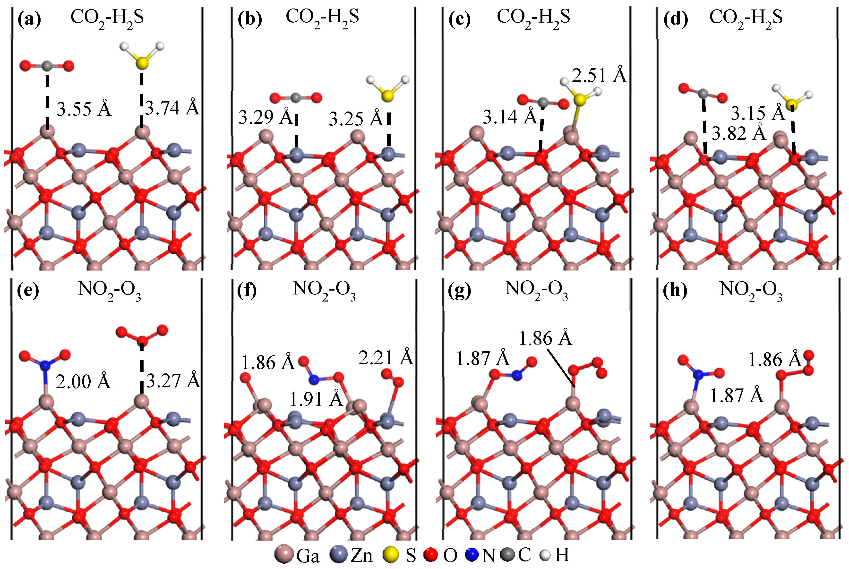 - Co-adsorption of O3 and NO2 on ZnGa2O4(111) significantly enhances electron transfer, leading to the most significant work function variation and adsorption energy, thereby improving gas sensor sensitivity.
