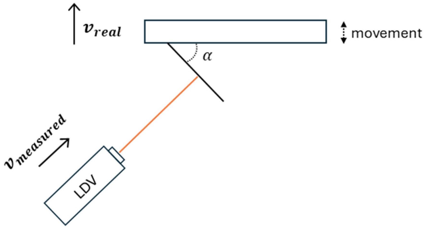 Figure 4 shows the ideal setup for an inclined target, the target’s projected motion can also be measured when the laser head is not perfectly normal to the surface. This increases flexibility but also the noise in the received signal.