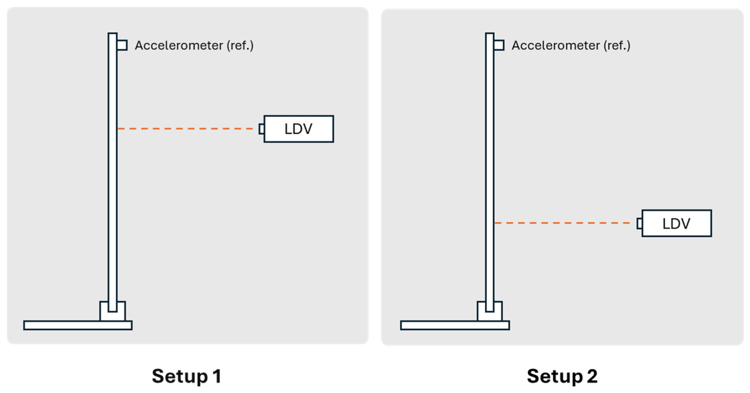 The LDV–accelerometer system consists of using a single reference accelerometer, permanently installed on the structure, while the LDV is sequentially directed to different points of interest to acquire velocity data. In this way, the information from both sensors can be combined to extract consistent modal parameters.