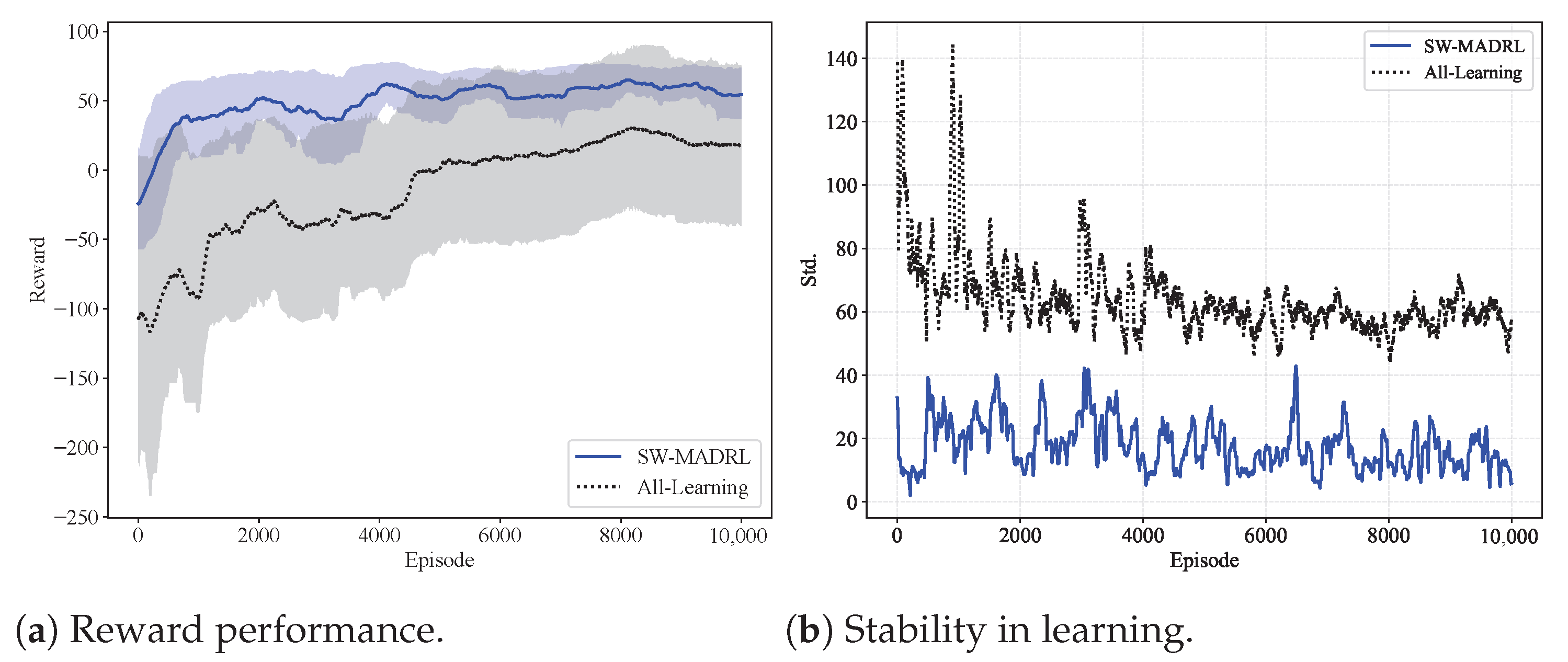5.1. Convergence Evaluation of SW-MADRL Framework