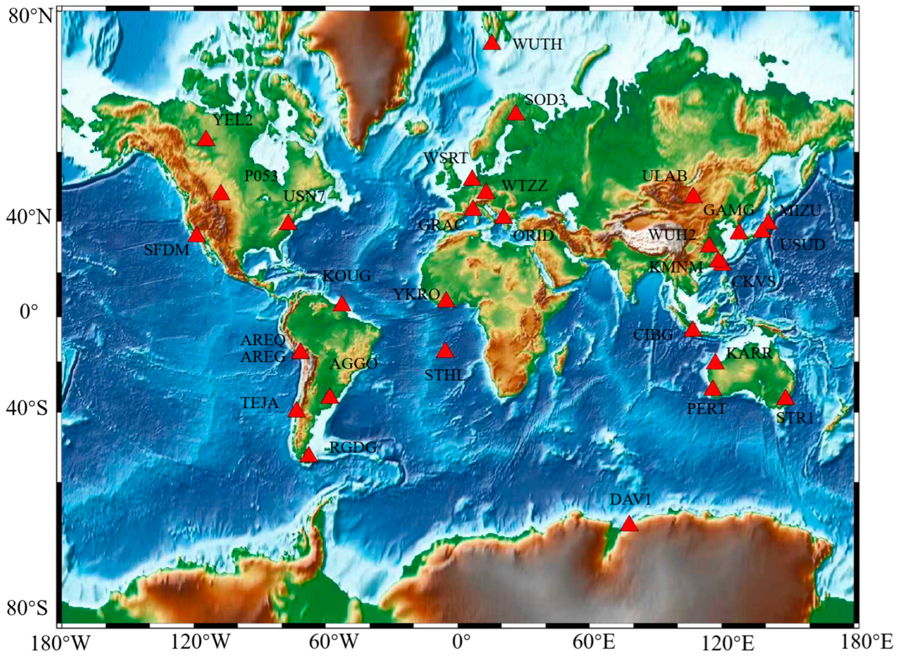 - Johnston, G.; Riddell, A.; Hausler, G. The international GNSS service. In Springer Handbook of Global Navigation Satellite Systems; Springer: Cham, Switzerland, 2017; pp. 967–982. [Google Scholar] [CrossRef]