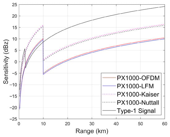 Comparison between the sensitivities of the radars presented in Table 4.