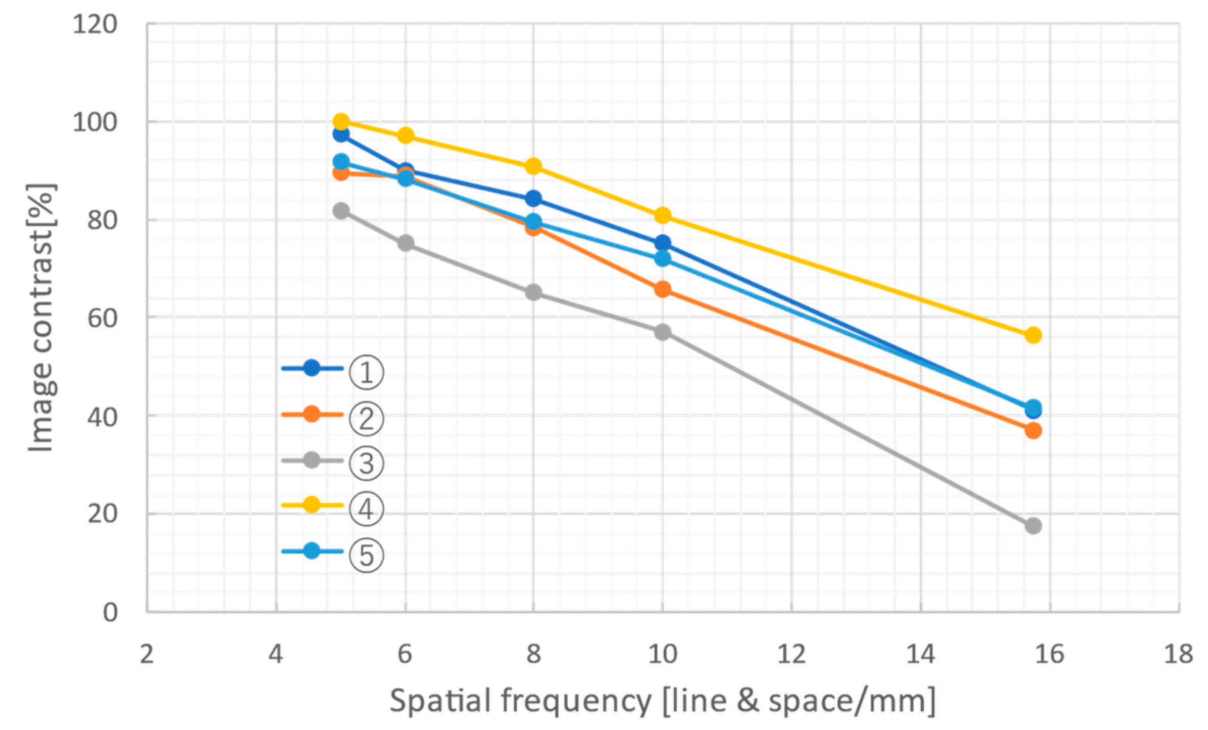 | No. | Pixel Size [μm] | Effective Width [mm] | Effective Height [mm] | Required Exposure Time for White SR [μs] | Required Exposure Time for Mono. SR [ms] | Spatial Resolution [μm] |