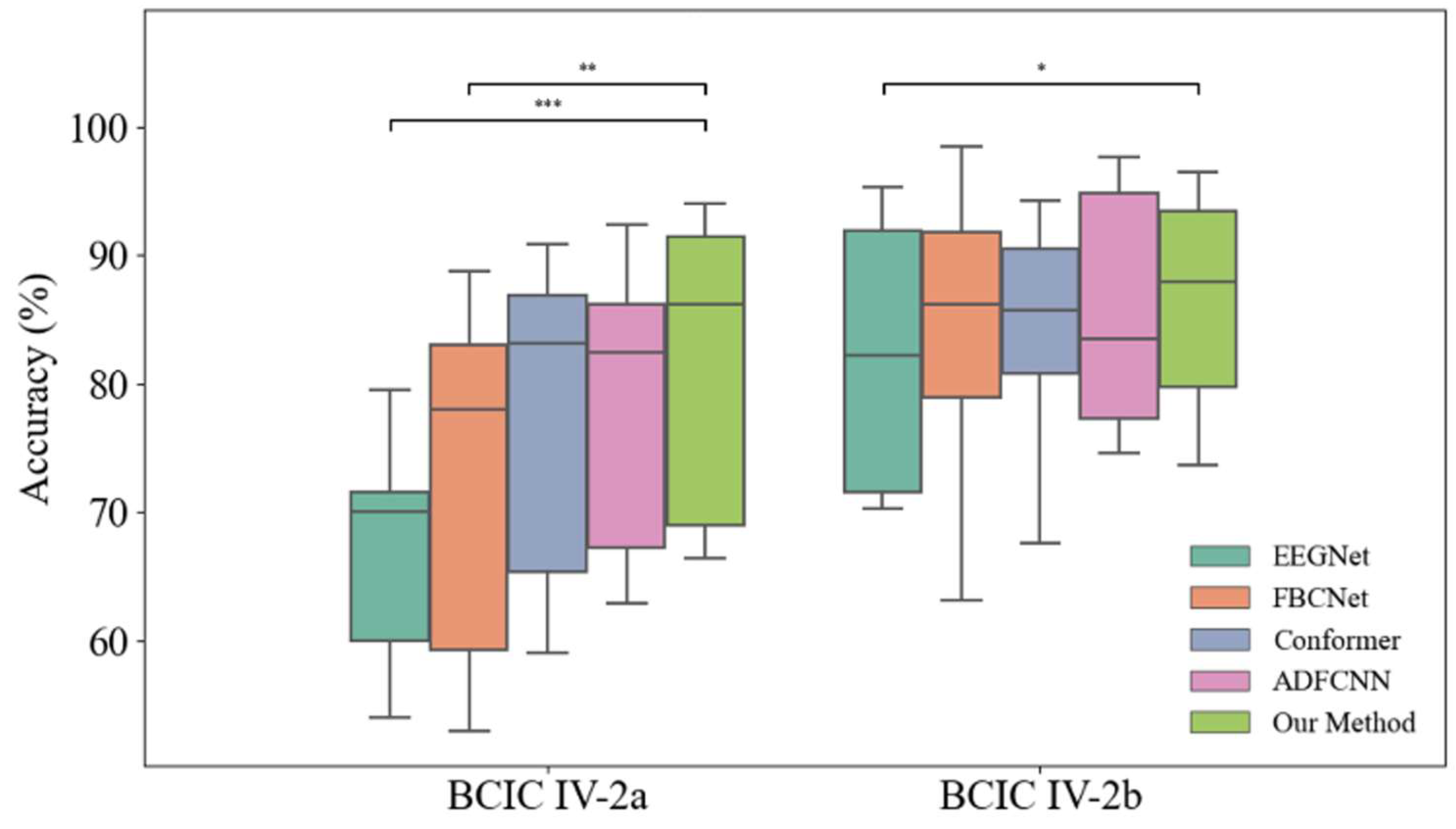 Figure 2. In the BCIC-IV2a dataset, there was a significant difference between Our method and EEGNet (