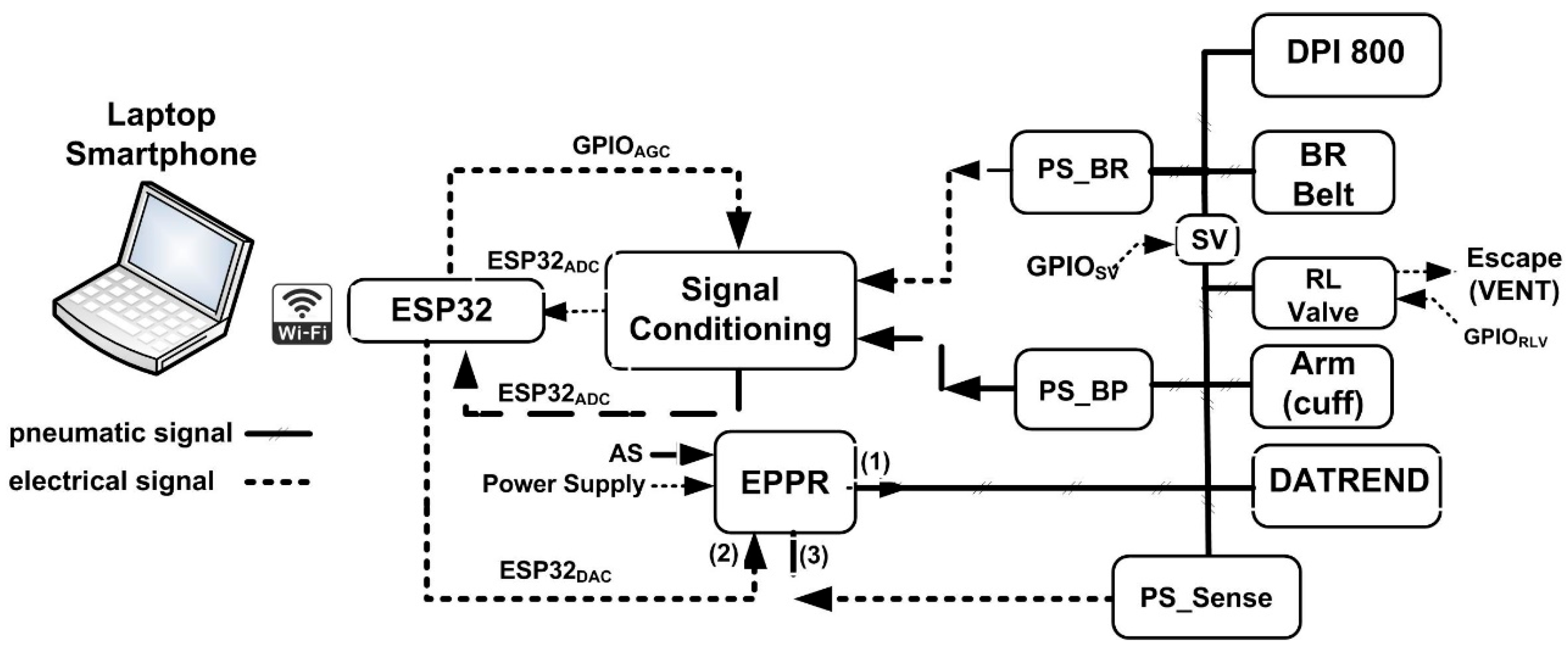 - Miranda, C.; Lescher, A.; Cuevas, A.; Rojas, A.; Molino, J. Ferramentas para Design and Laboratory Validation of a Gas Analyzer Prototype for Mechanical Ventilation Using ESP32. In Proceedings of the IEEE Central America and Panama Student Conference (CONESCAPAN), Central America and Panama Student Conference, Tegucigalpa, Honduras, 23 September 2025; IEEE: New York, NY, USA, 2025; pp. 1–4. [Google Scholar]