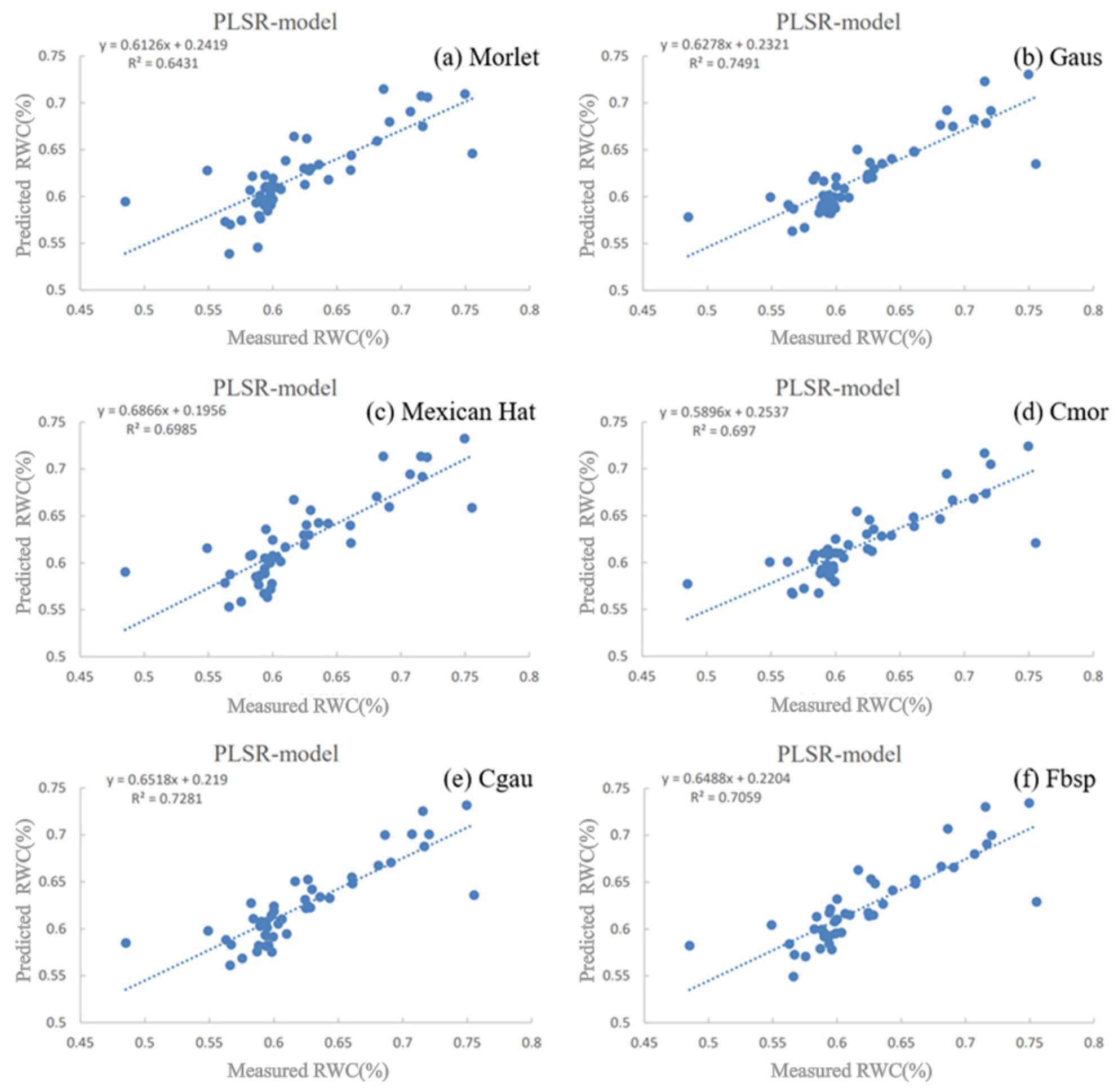 3.3. Comparative Analysis of Citrus Leaf RWC and LCC Prediction Models Based on CWT
