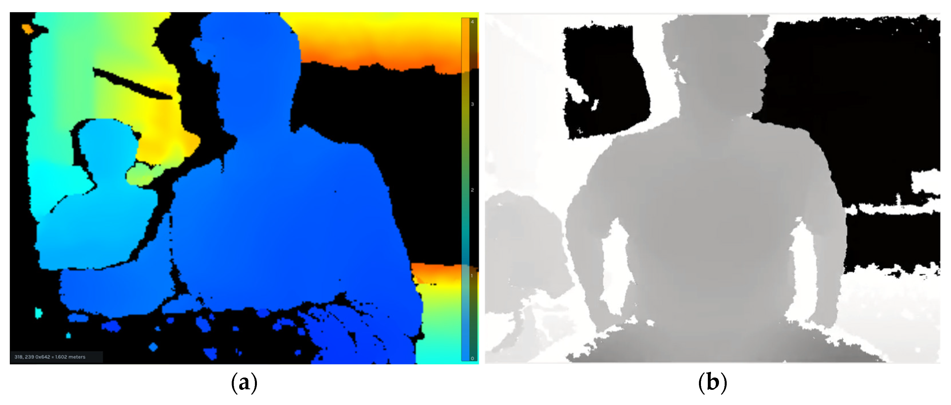 Figure 4, reduces computational load while maintaining sufficient accuracy for selected degrees of freedom. In these visualizations, the color scale encodes the depth value per pixel, mapping each point’s distance to the camera within the captured RGB-D scene.