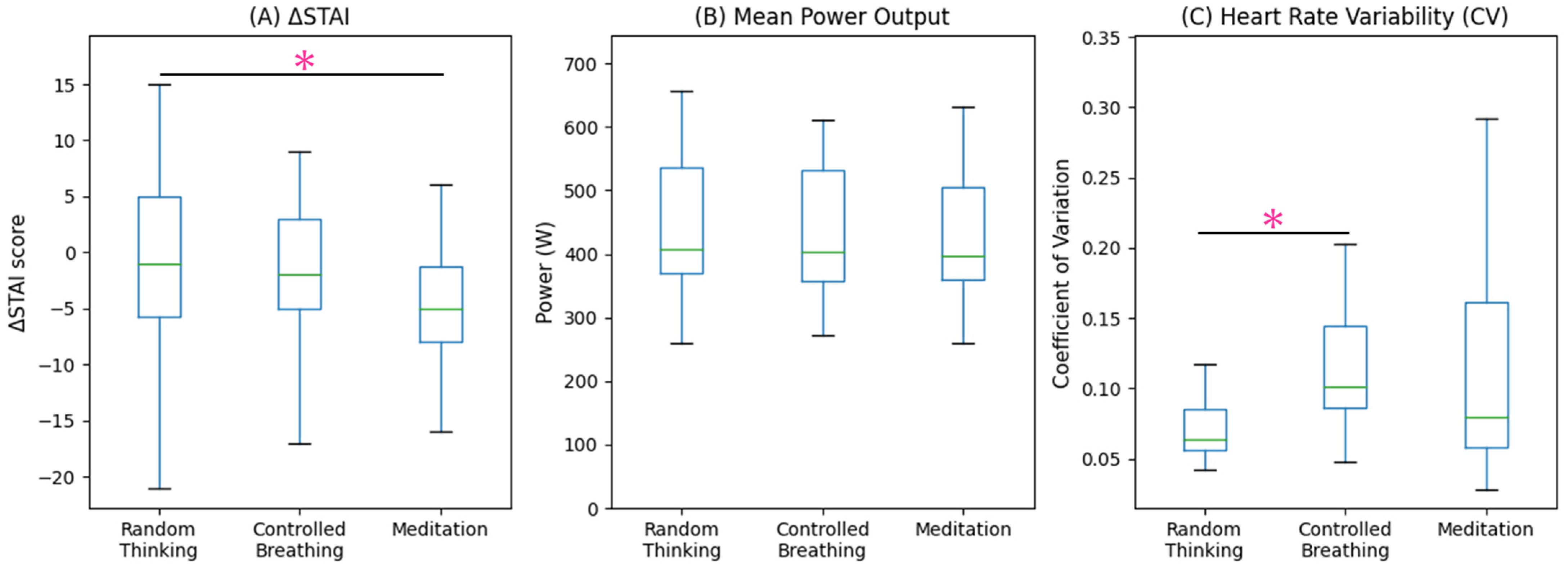 - Focused attention meditation reduced pre-exercise anxiety, whereas controlled breathing primarily modulated heart rate variability, and neither intervention affected HIIT performance.