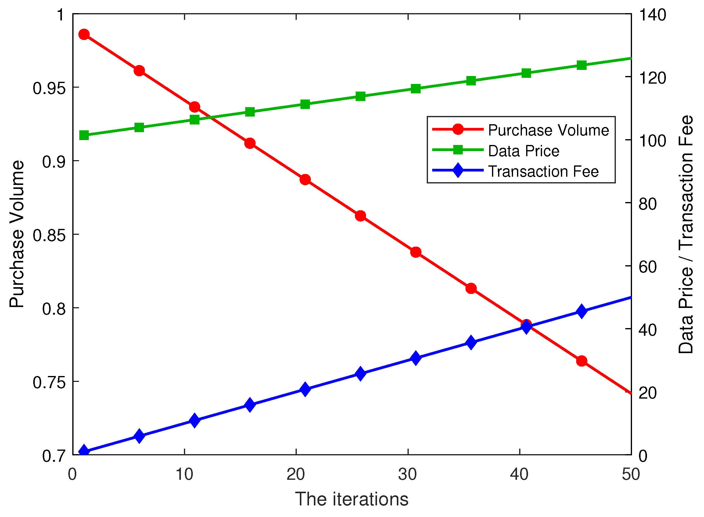 5.2. Relationship Among Transaction Fee, Unit Data Price, and Data Purchase Volume