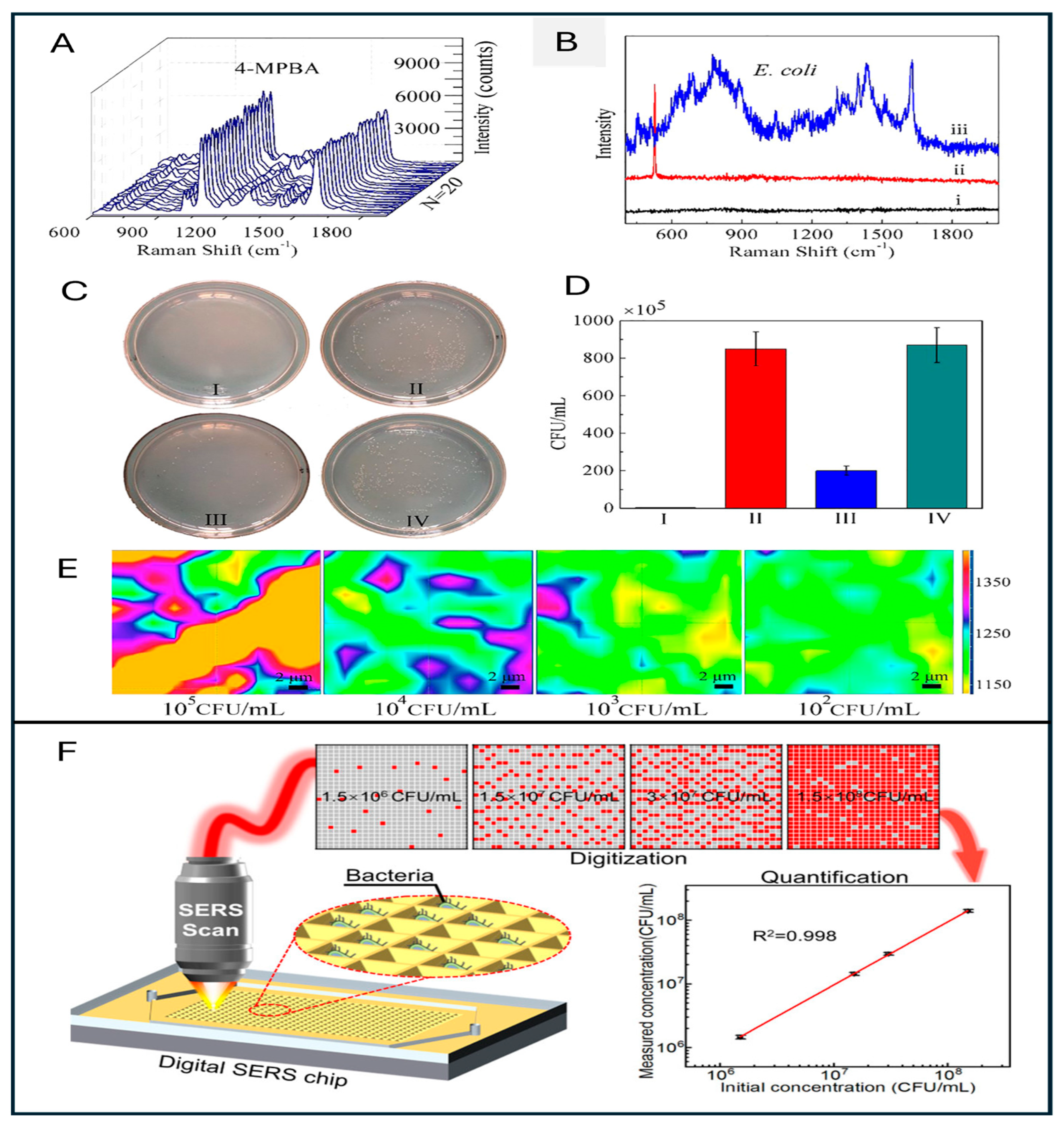 - Overview of SERS for E. coli detection, including historical development, fundamental principles, and key factors influencing sensitivity, specificity, and reproducibility.