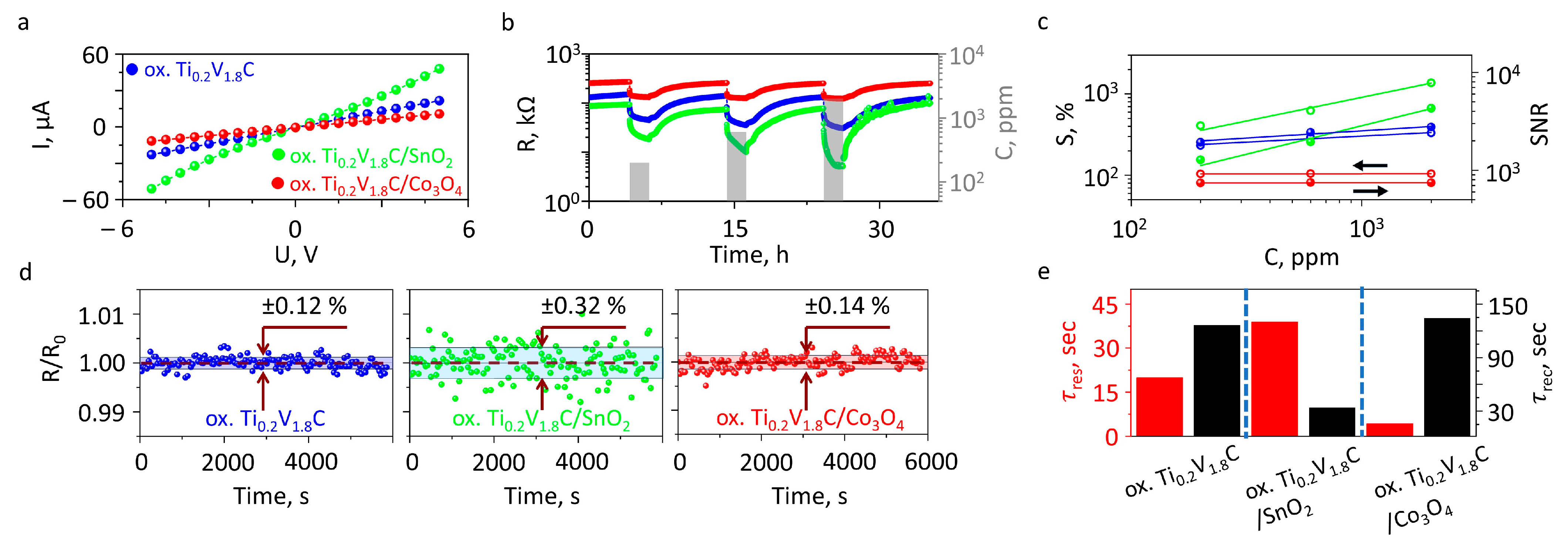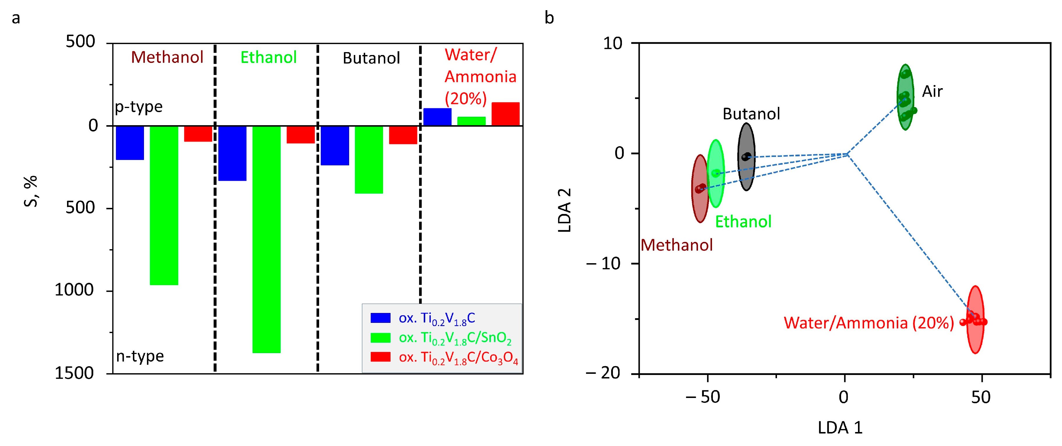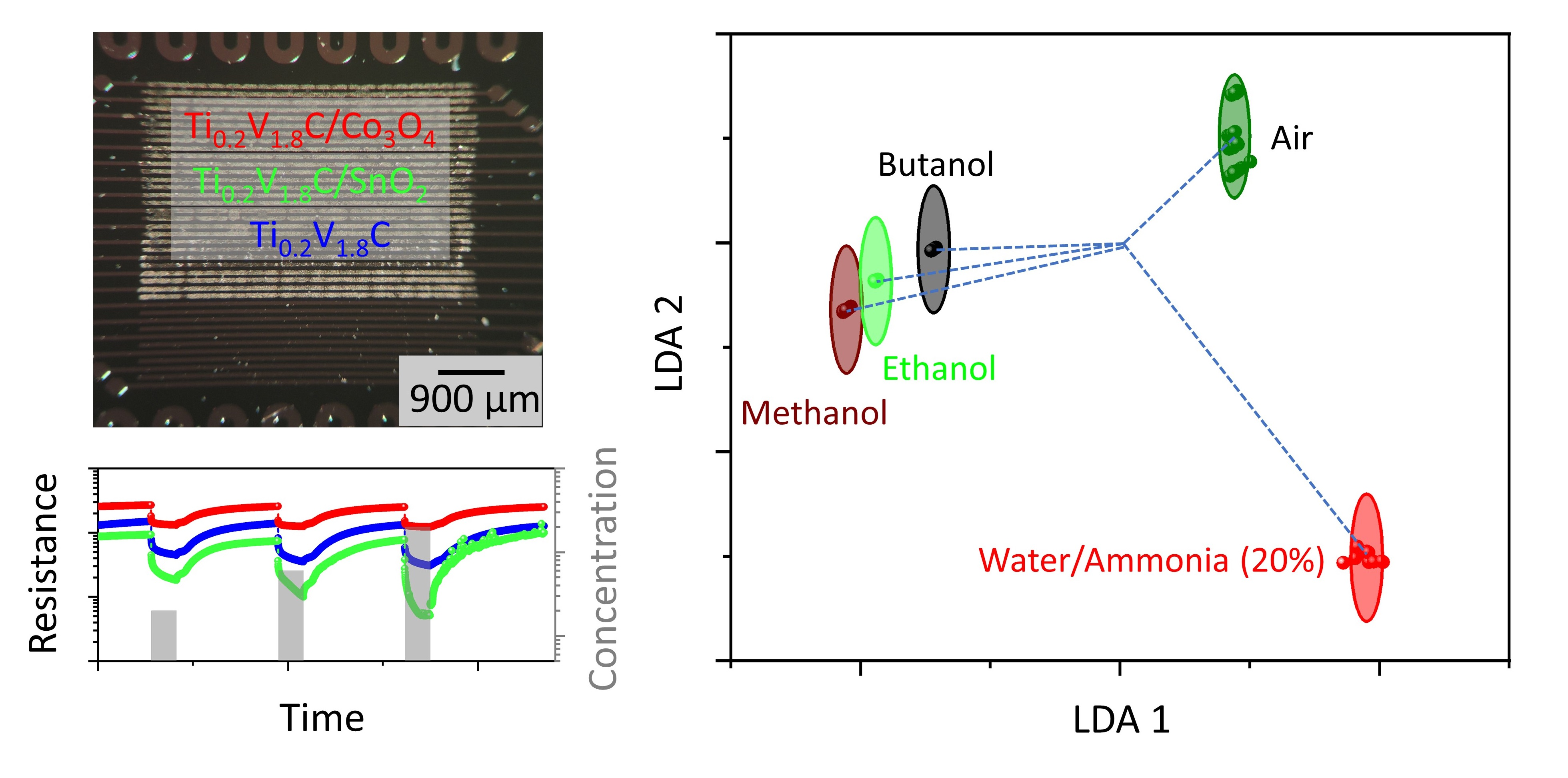 - The Ti0.2V1.8C MXene/metal oxide composites are shown as promising, versatile materials for designing multisensor arrays.