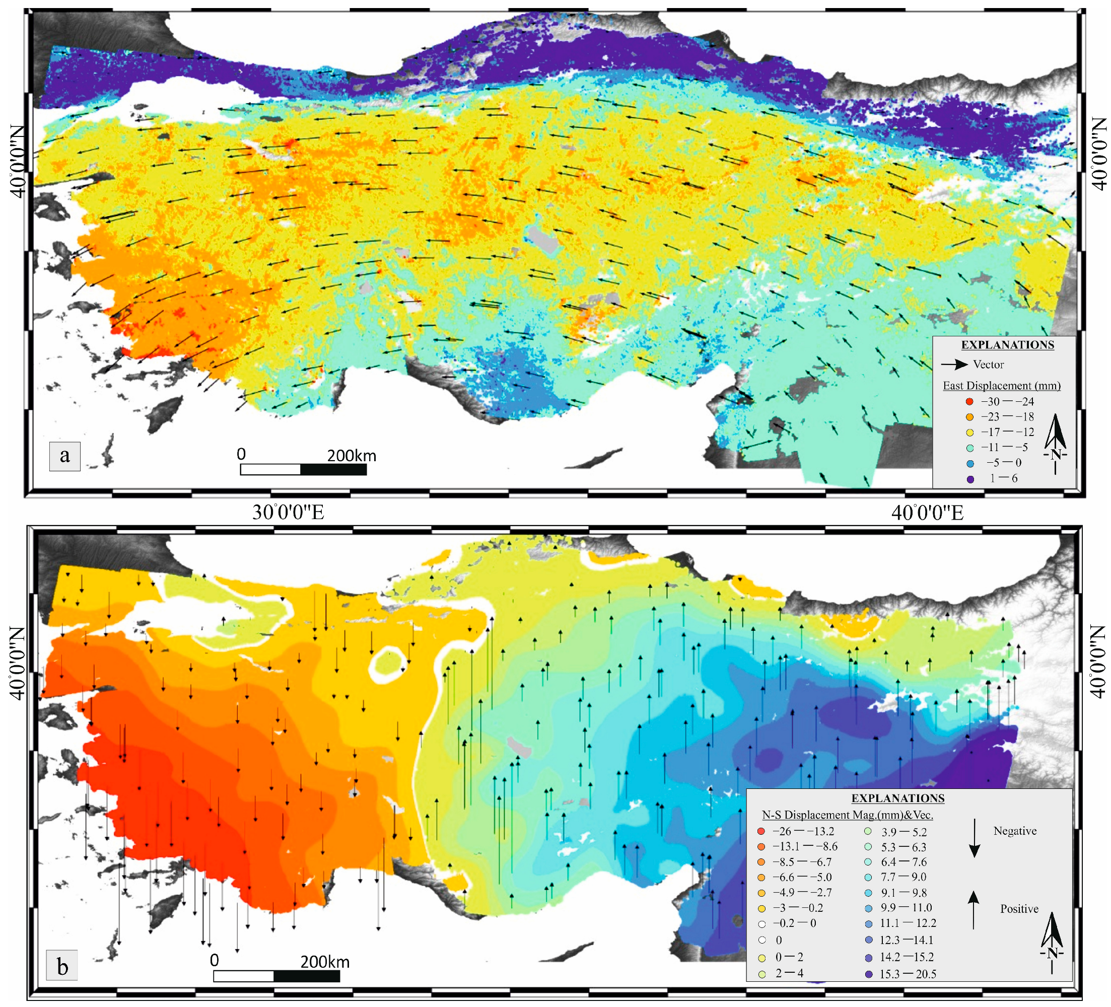 - Reilinger, R.; McClusky, S.; Vernant, P.; Lawrence, S.; Ergintav, S.; Cakmak, R.; Ozener, H.; Kadirov, F.; Guliev, I.; Stepanyan, R.; et al. GPS constraints on continental deformation in the Africa-Arabia-Eurasia continental collision zone and implications for the dynamics of plate interactions. J. Geophys. Res.-Solid Earth 2006, 111, 52. [Google Scholar] [CrossRef]