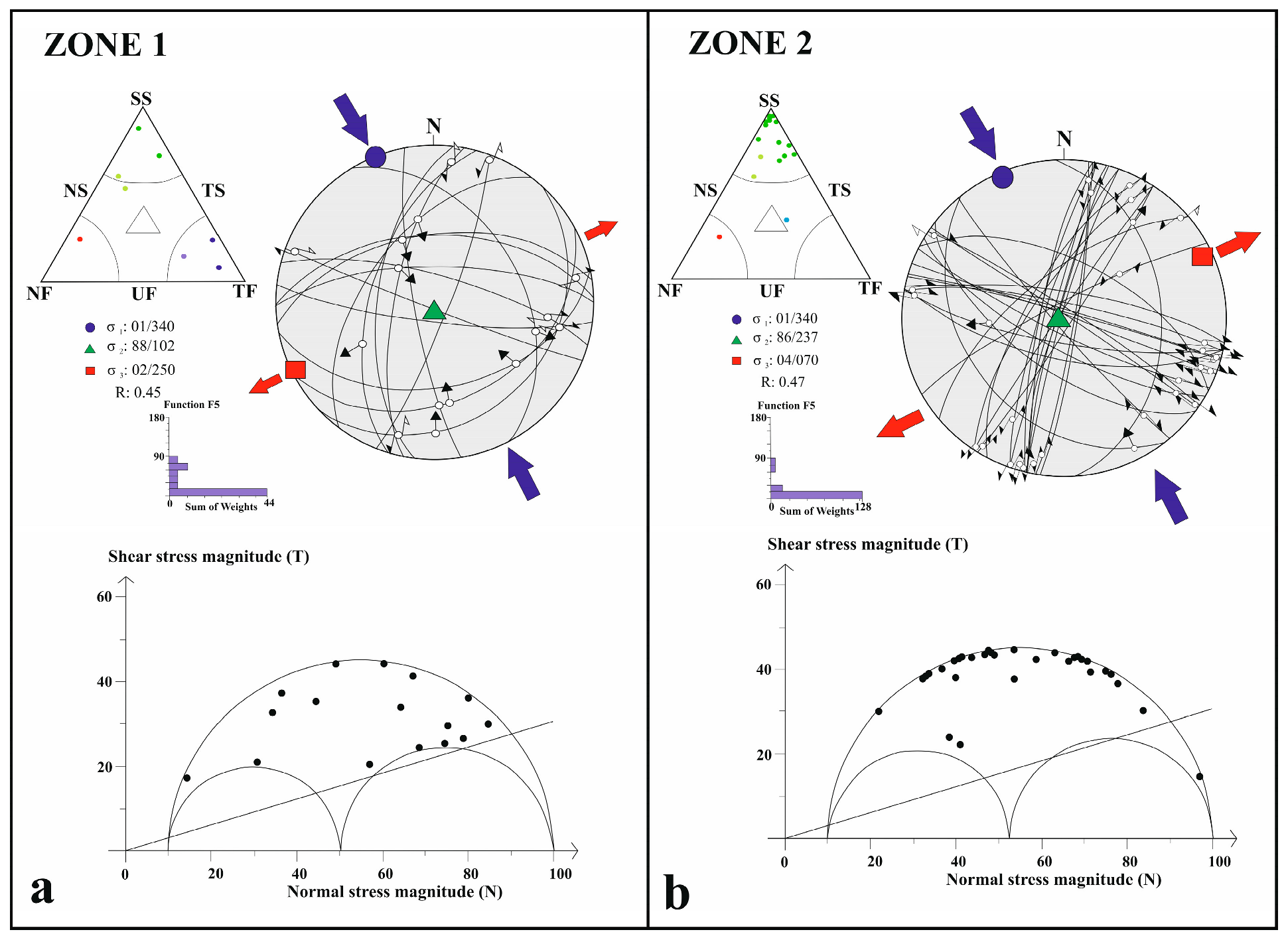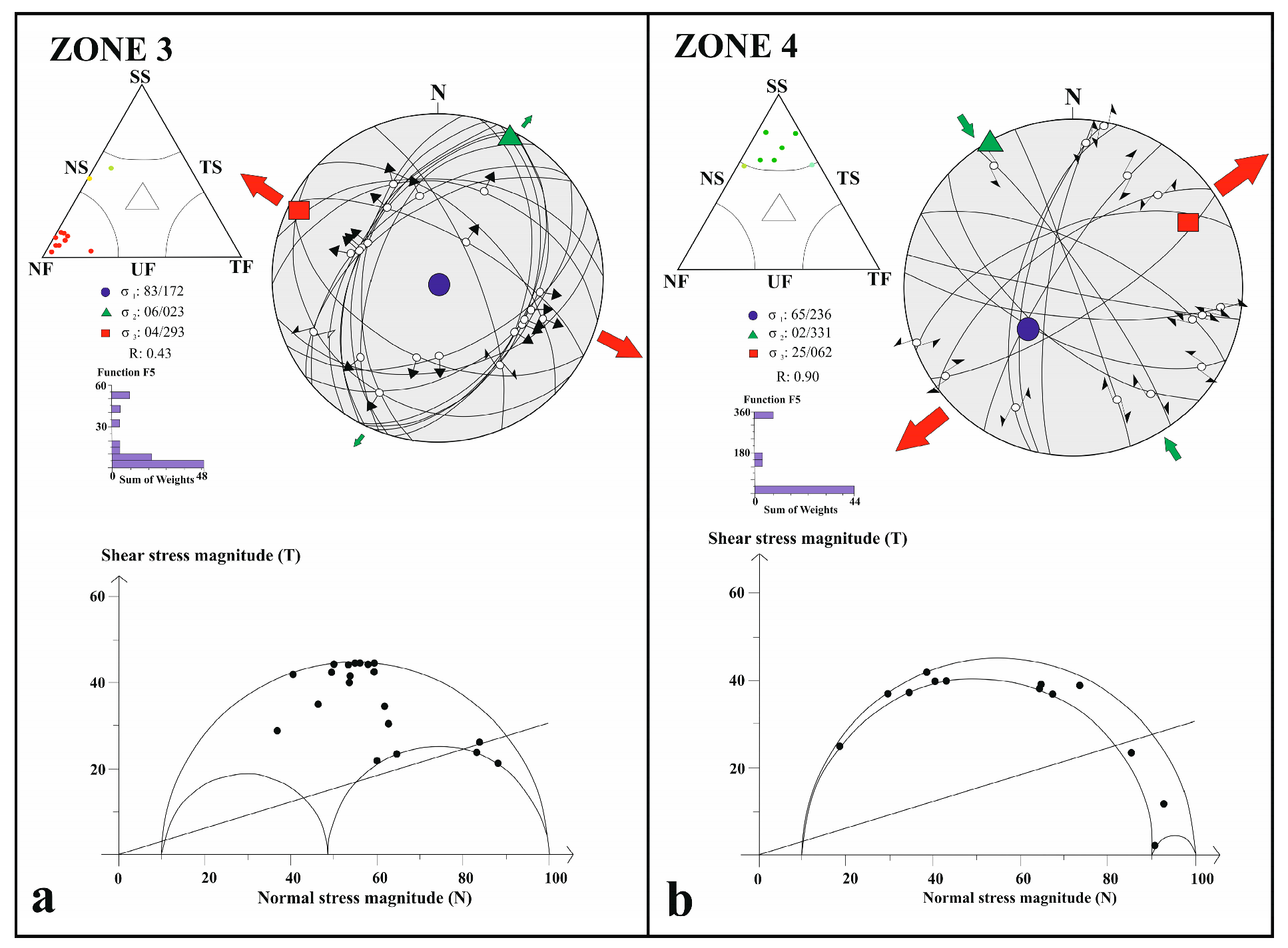 4.2. Stress Tensor Inversion Results