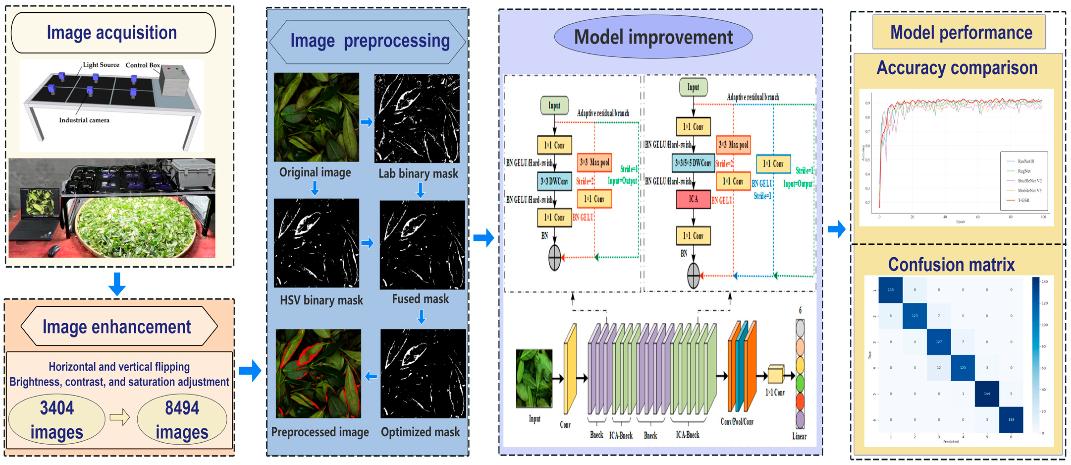 9]. Similarly, Guo et al. developed an improved Inception network through image quality optimization and transfer learning, which improved the classification accuracy of tea appearance quality to 95% [