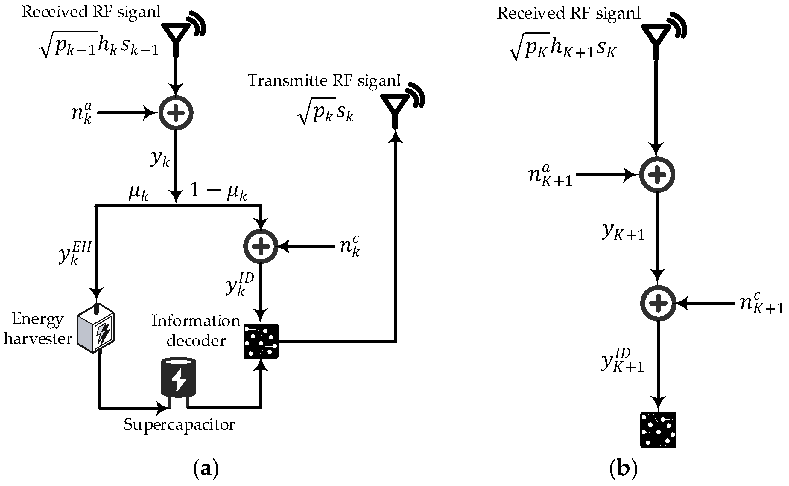 . It is assumed that the source node is powered by an internal battery or an external power supply, while all the relays operate in a passive state. Specifically, relay