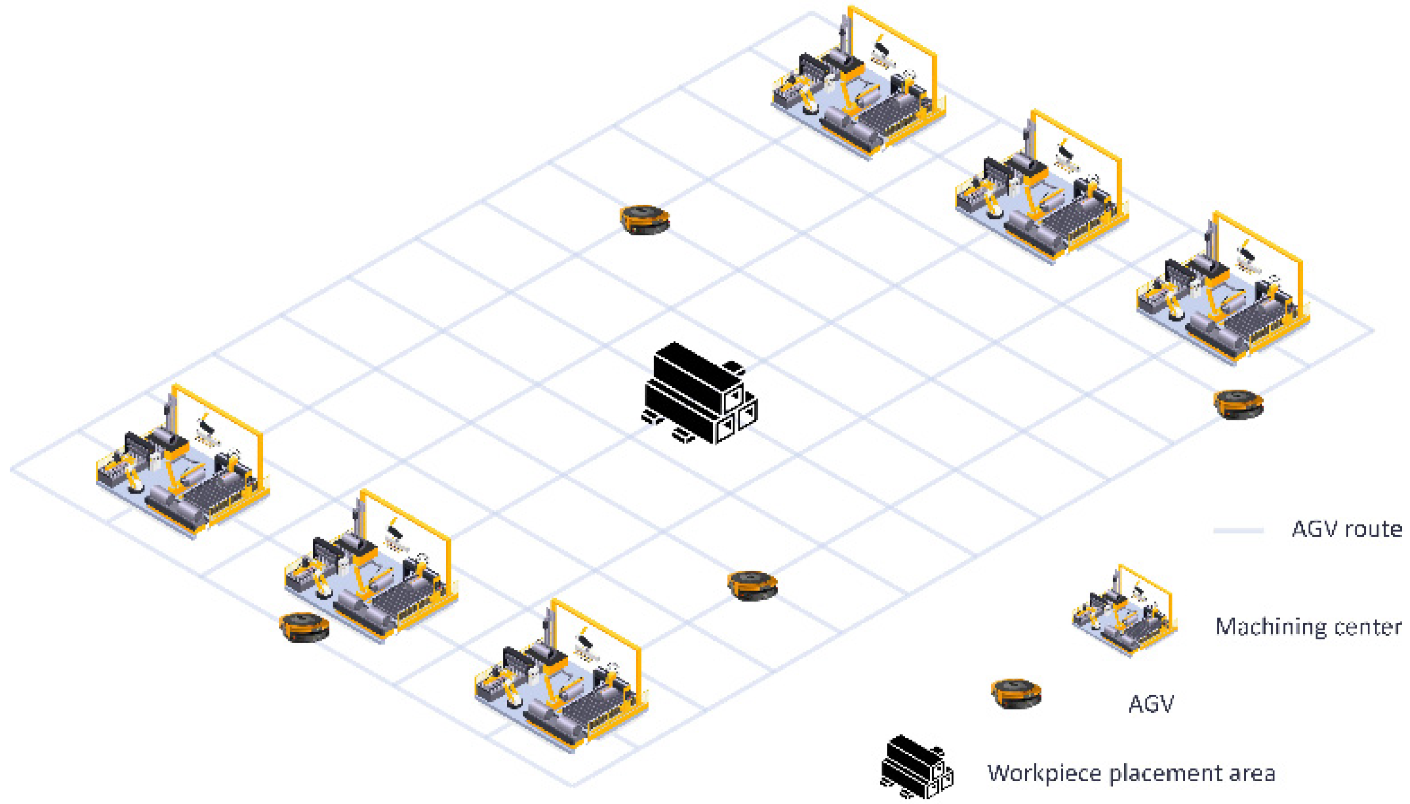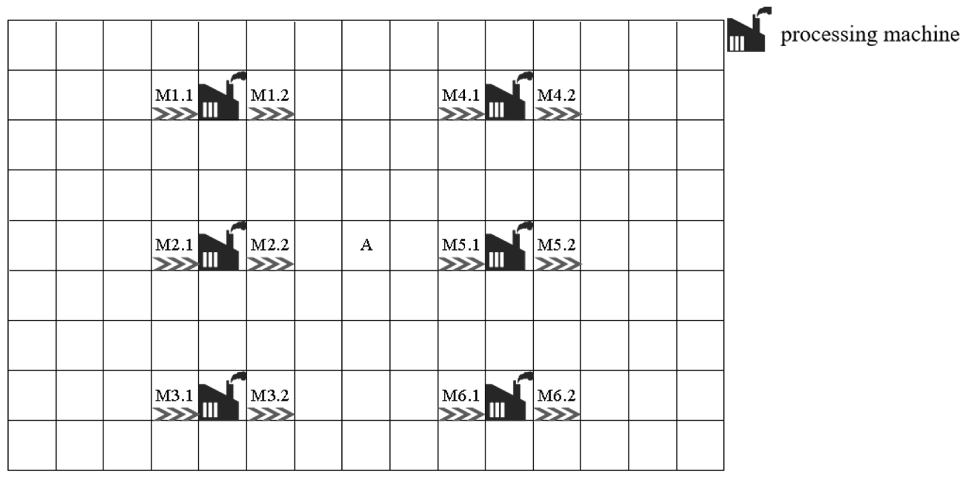 To enhance the implementability of the scheduling algorithm, this study incorporates a distinct workshop spatial architecture during modeling, as illustrated in