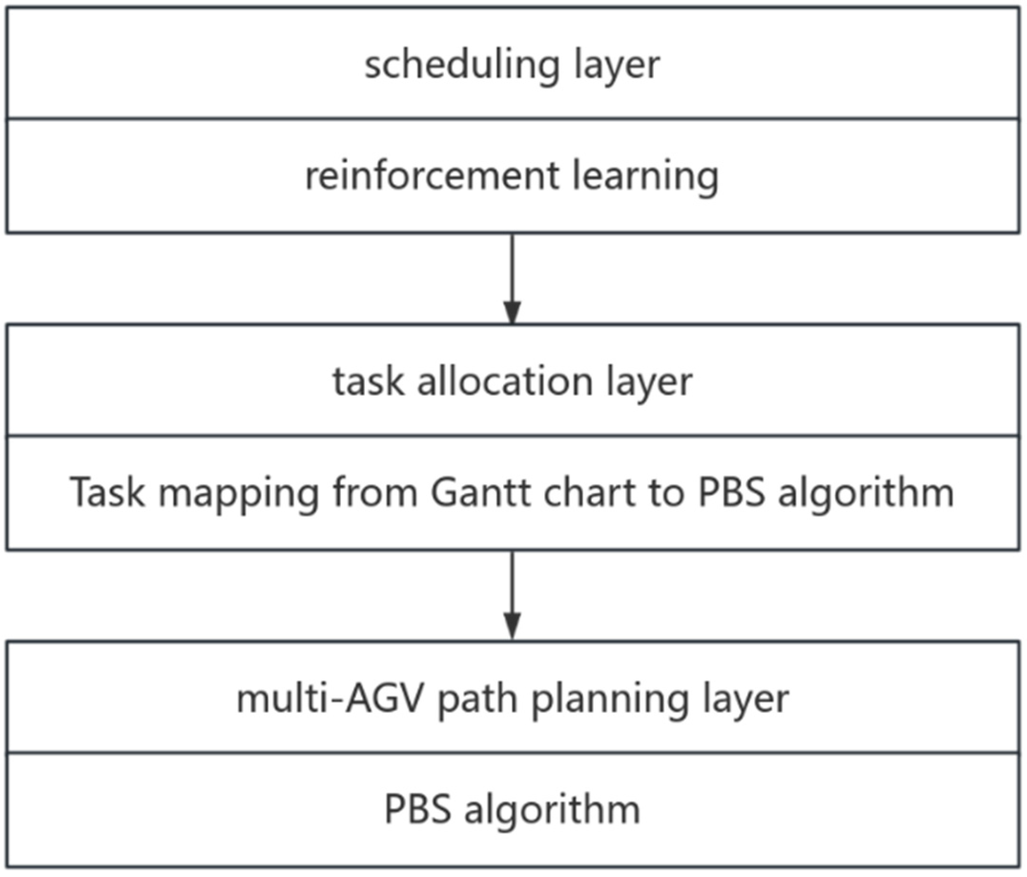Building upon the model definition, this chapter unfolds in the sequence of “scheduling layer → task allocation layer → multi-AGV path planning layer”: First, it presents the MDP design and training strategies for the reinforcement learning scheduler; then, automatically generates and assigns transportation tasks through Gantt chart preprocessing; subsequently implements PBS (Priority-Based Search) for multi-AGV non-conflict path planning on workshop topology; finally, feeds the arrival times of paths back into the timeline to complete the sequential integration of processing and transportation.