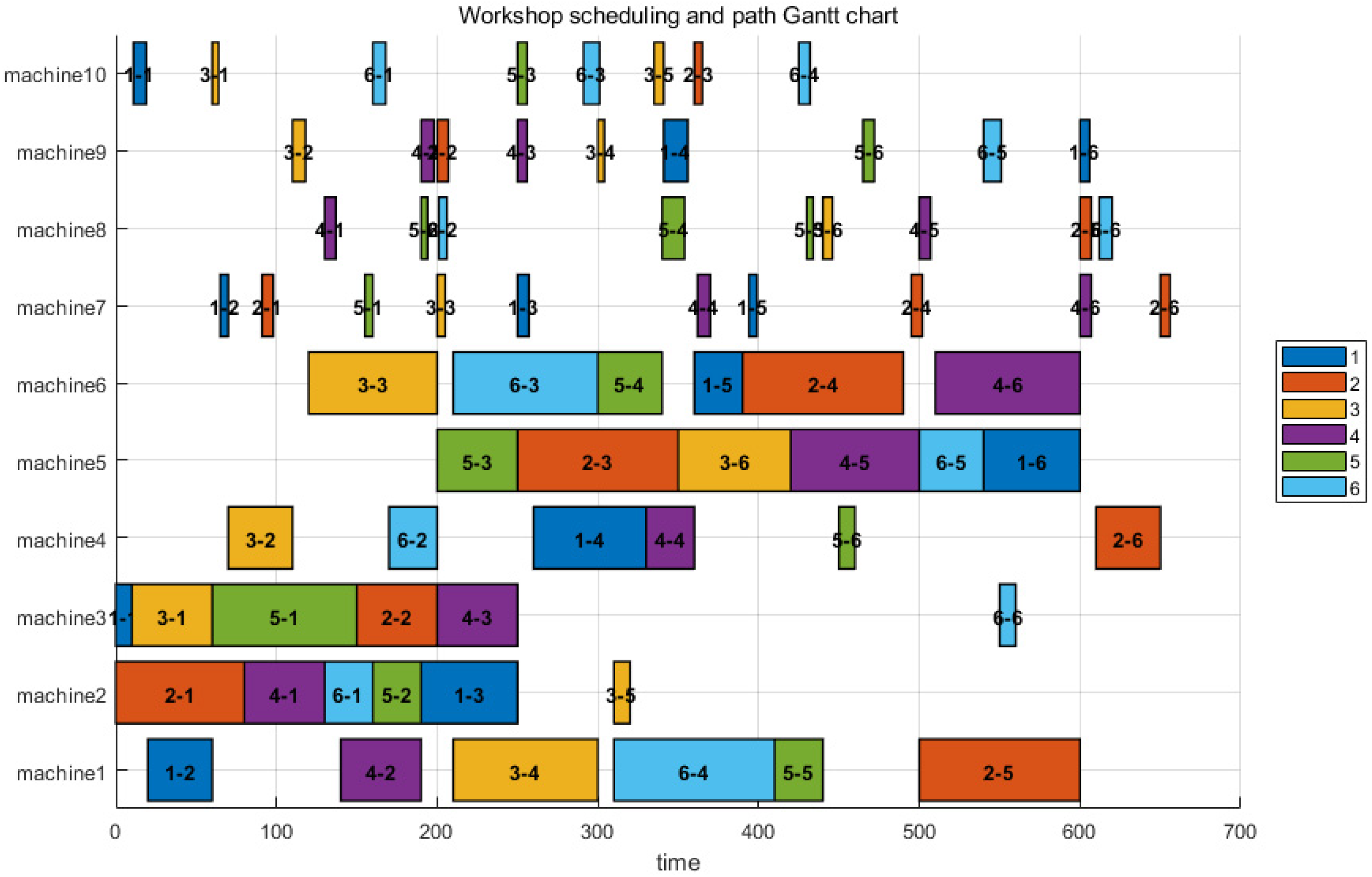 10]). Since conventional JSPs disregard transportation routes, we need to introduce a multi-robot path problem to address workpiece transportation in shop floor scheduling.