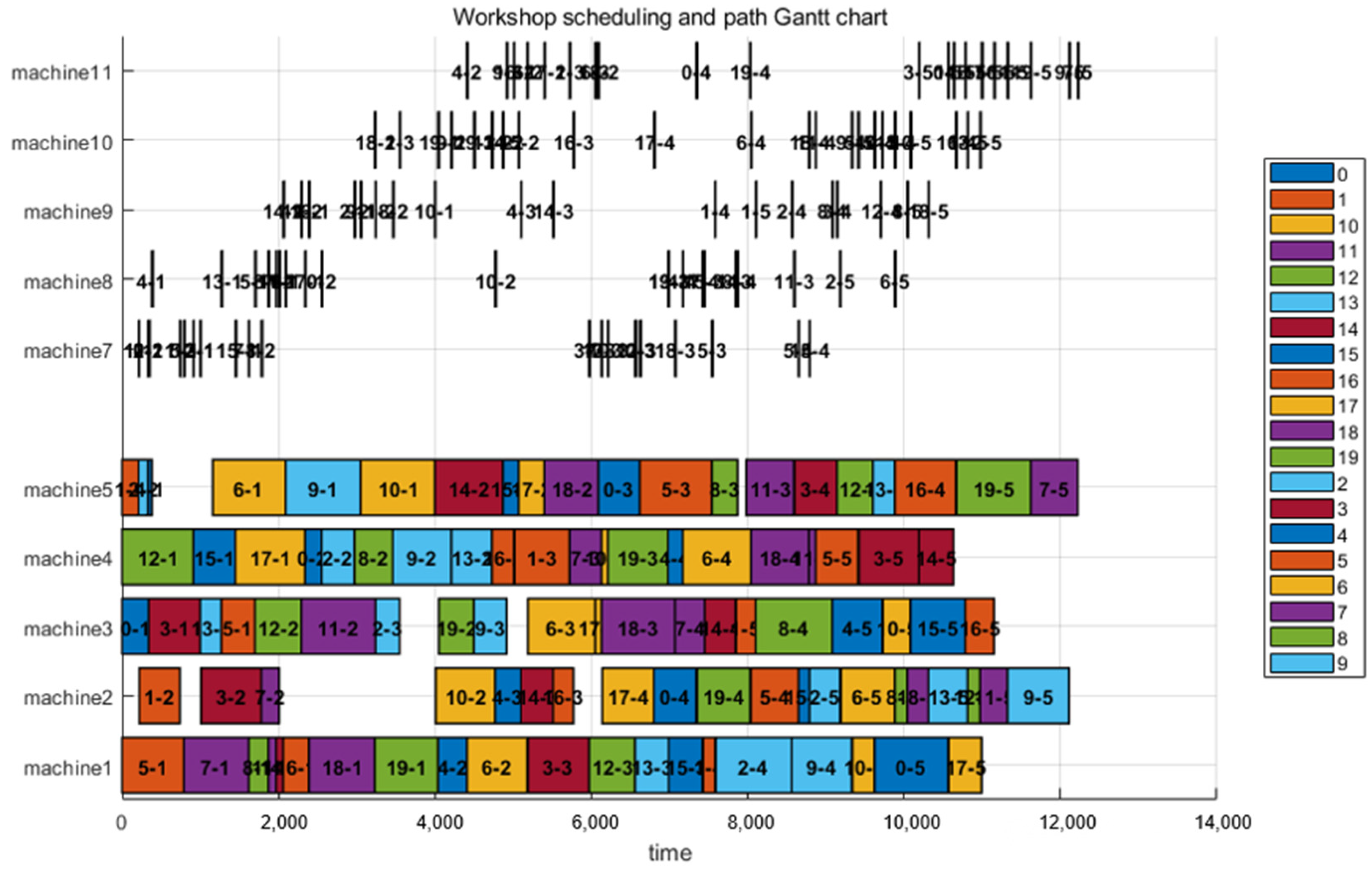 The processing sequence and time scheduling of the workpiece on each machine;