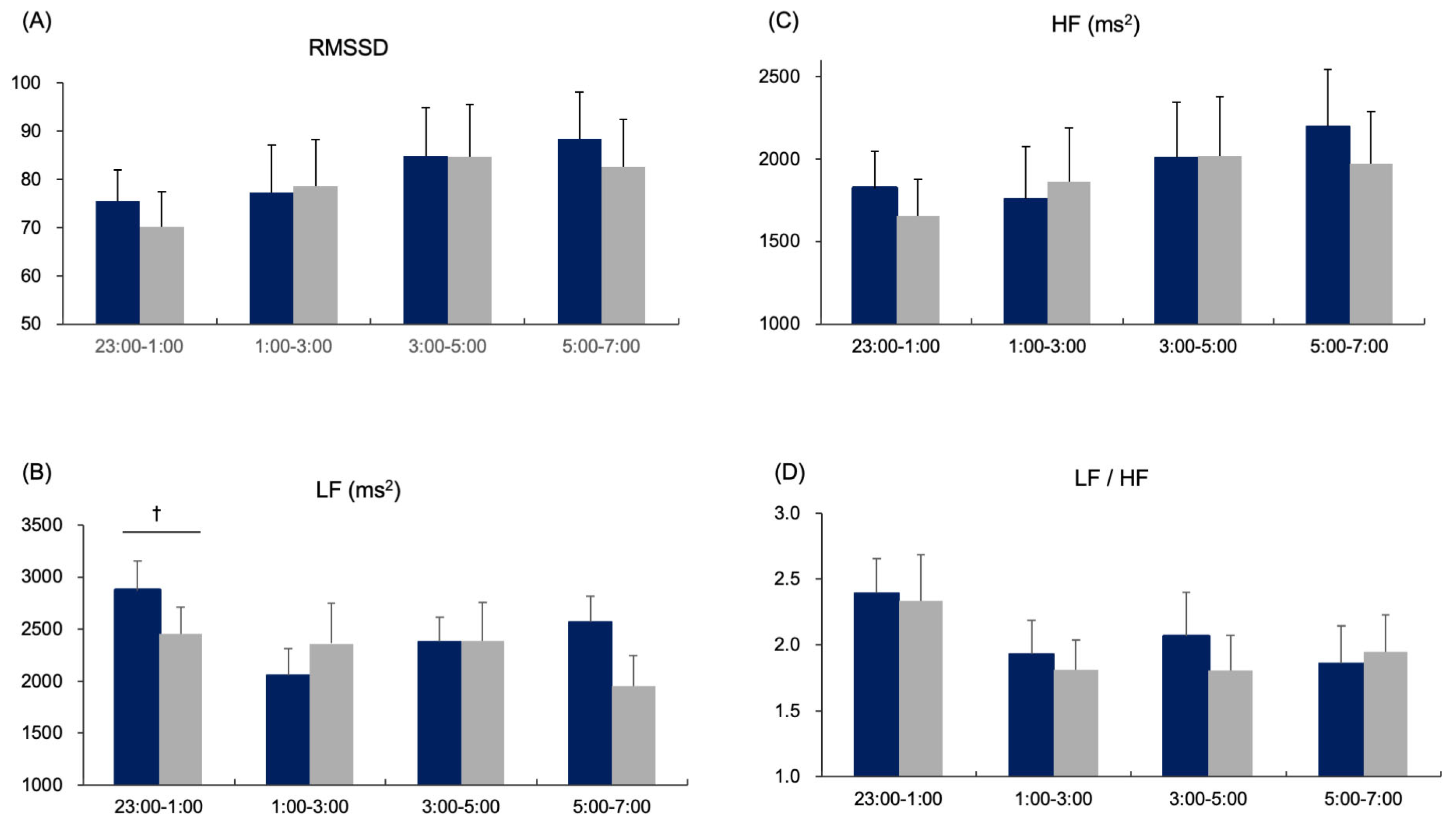 | Sleep stages (absolute time) | N1 (min) | 31.7 (0.5) | 35.3 (0.6) | 0.715 | 0.486 | 0.230 |