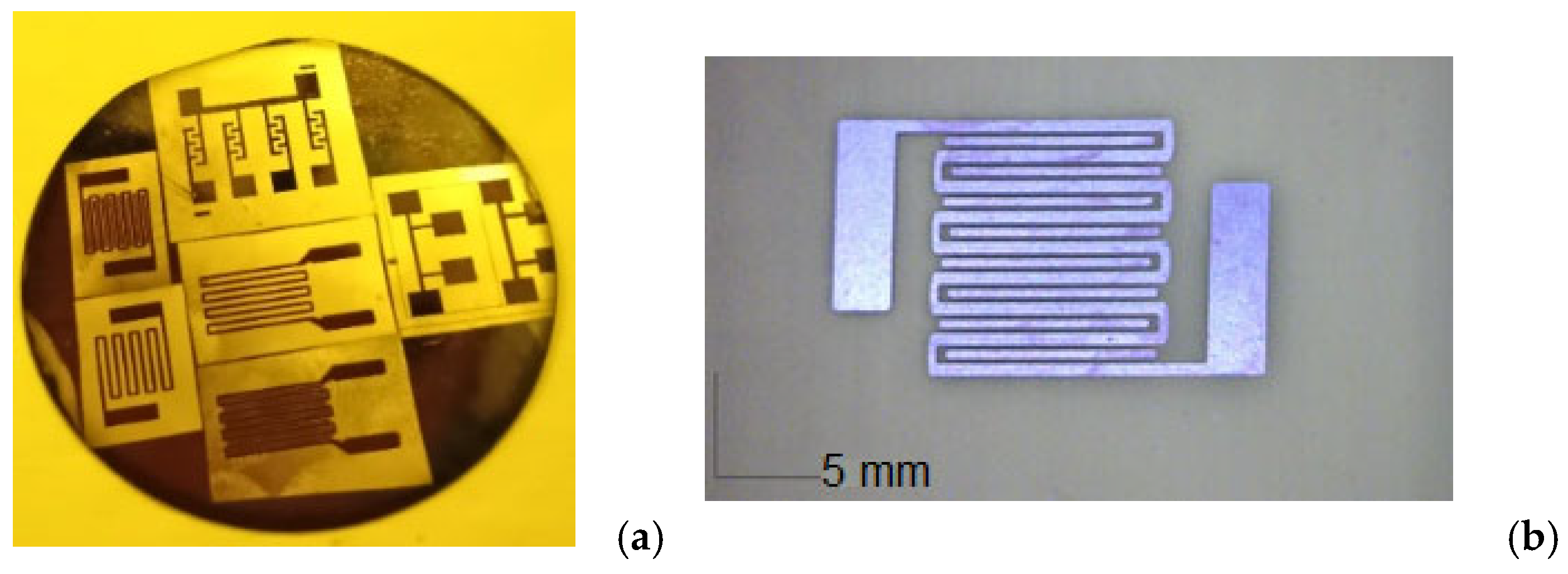Figure 2a) and compare with reference test resistive structures. Then the technology flow was transferred to the flexible substrate (