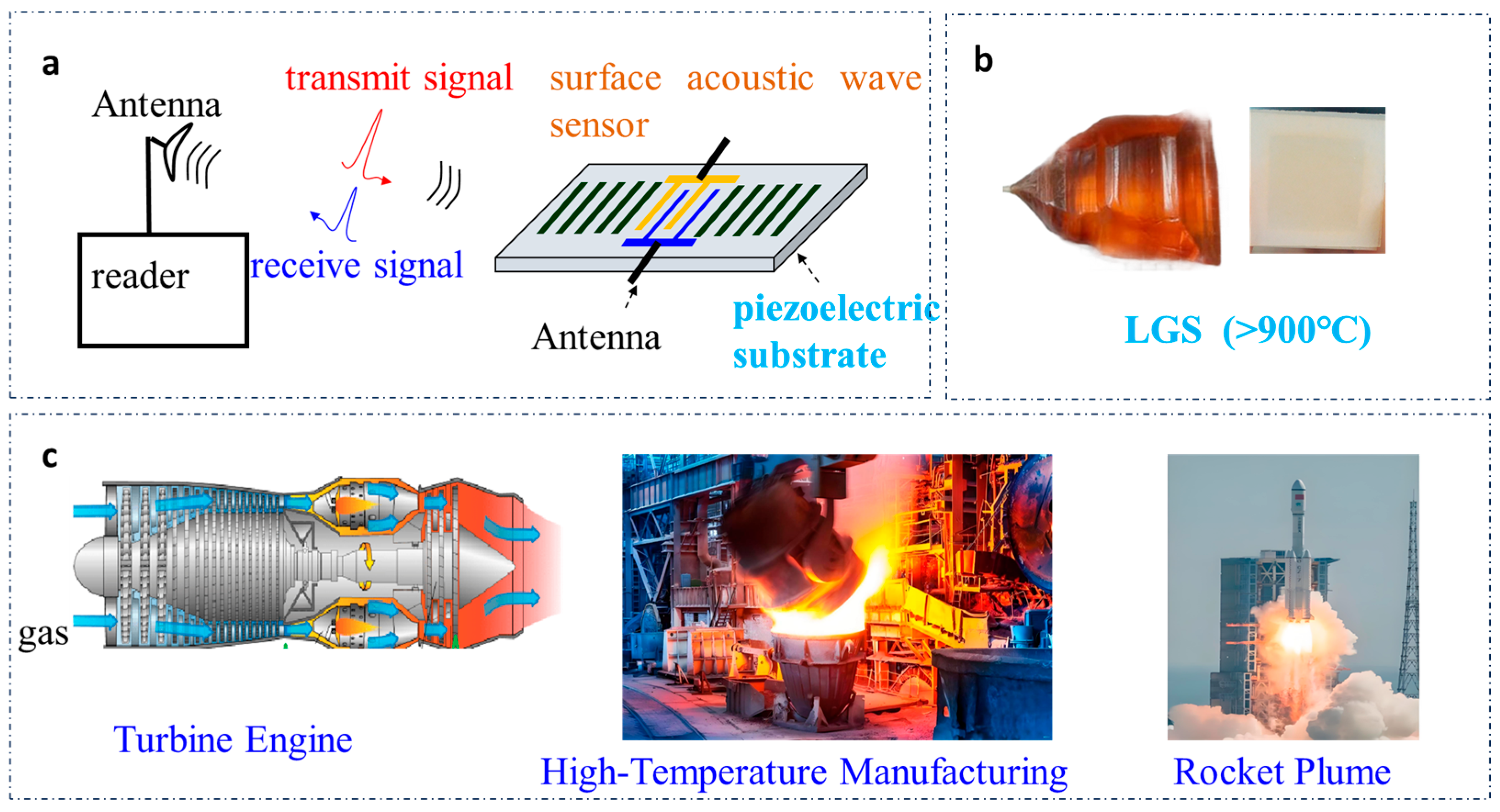 - Da Cunha, M.P.; Moonlight, T.; Lad, R.; Bernhardt, G.; Frankel, D.J. Enabling Very High Temperature Acoustic Wave Devices for Sensor & Frequency Control Applications. In Proceedings of the 2007 IEEE Ultrasonics Symposium Proceedings, New York, NY, USA, 28–31 October 2007; pp. 2107–2110. [Google Scholar]