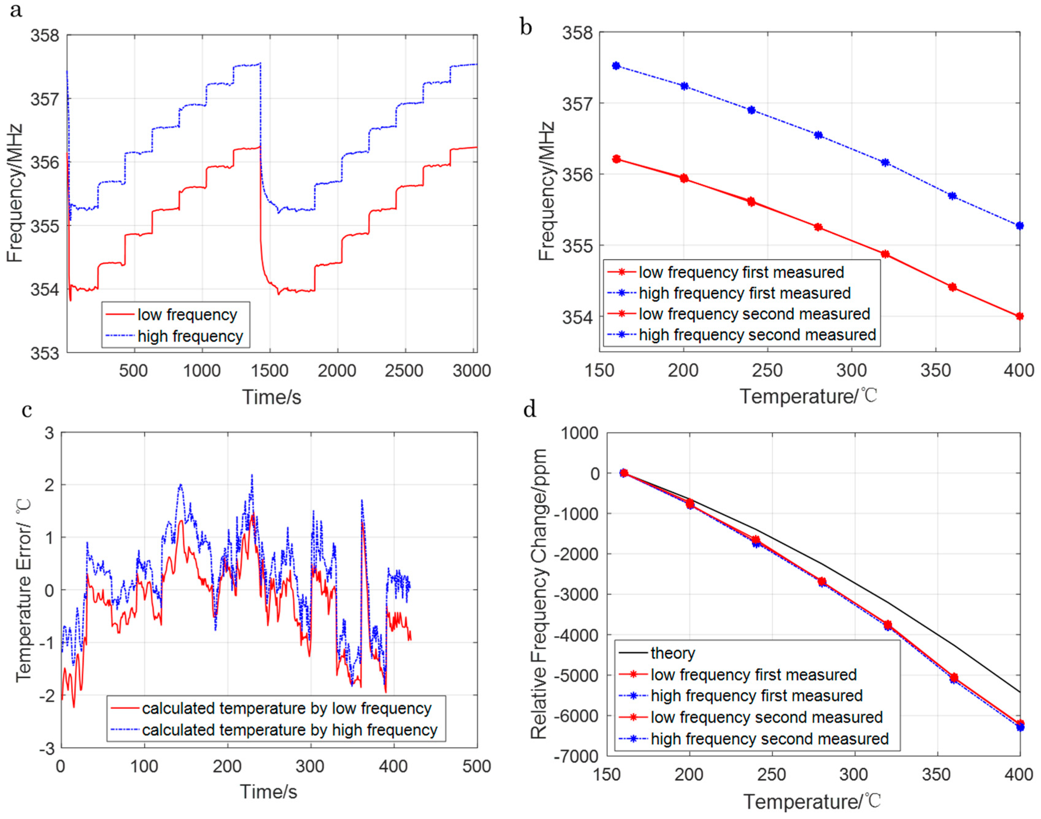 - Nicolay, P.; Aubert, T. A Numerical Method to Derive Accurate Temperature Coefficients of Material Constants From High-Temperature SAW Measurements: Application to Langasite. IEEE Trans. Ultrason. Ferroelectr. Freq. Control. 2014, 60, 2137–2141. [Google Scholar] [CrossRef] [PubMed]