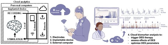 - Sladky, V.; Nejedly, P.; Mivalt, F.; Brinkmann, B.H.; Kim, I.; St. Louis, E.K.; Gregg, N.M.; Lundstrom, B.N.; Crowe, C.M.; Attia, T.P.; et al. Distributed brain co-processor for tracking spikes, seizures and behaviour during electrical brain stimulation. Brain Commun. 2022, 4, fcac115. [Google Scholar] [CrossRef]