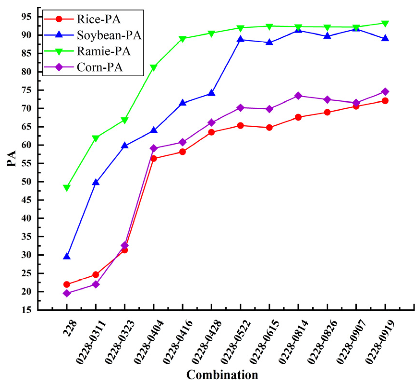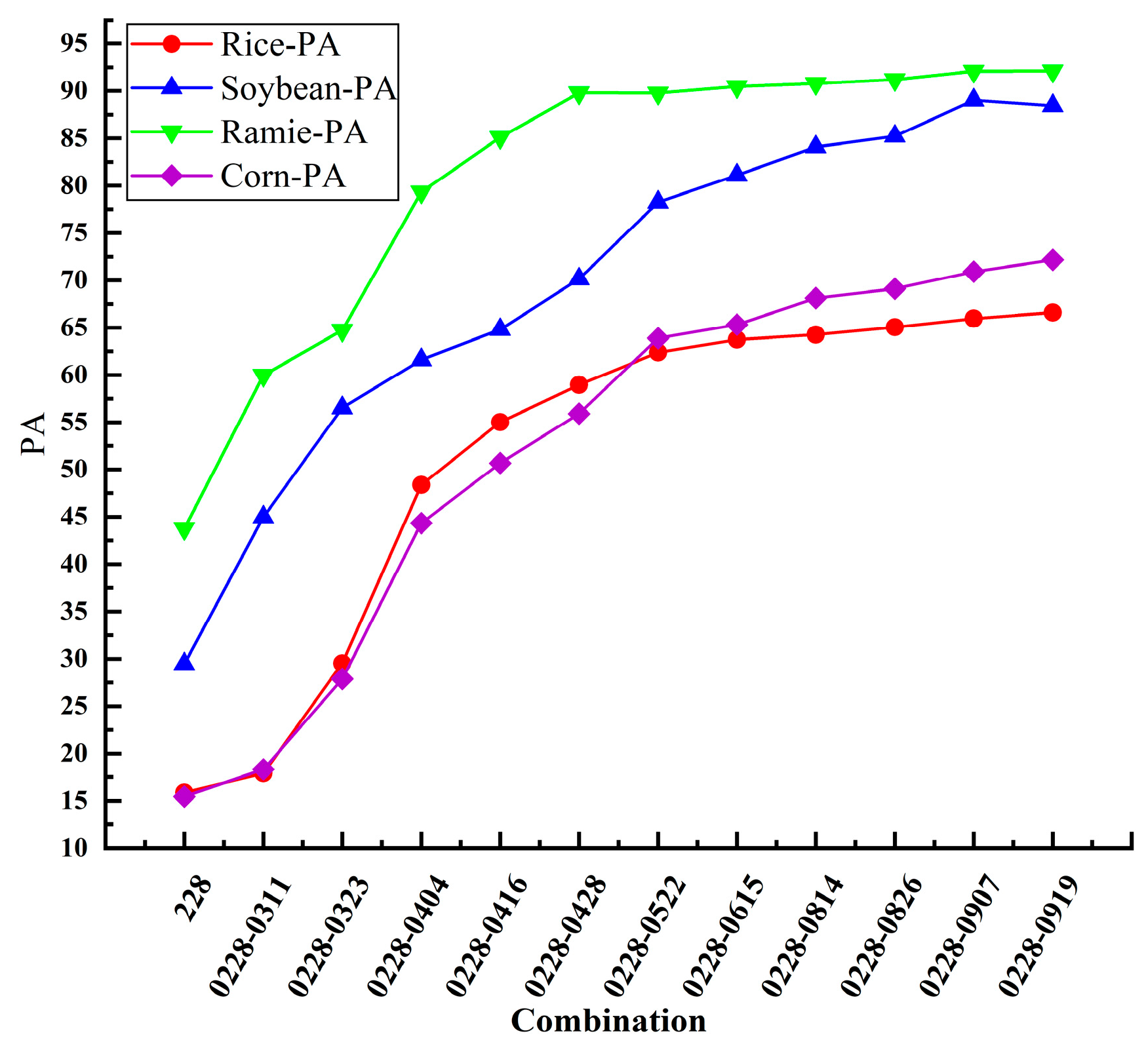 Figure 5. The PA for each crop is shown in