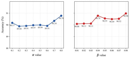 Here, and are self-distillation parameters, which balance the hierarchical classification loss, KL divergence loss, and feature alignment loss. In Section 4.5, a sensitivity analysis through ablation experiments will systematically investigate the impact of these hyperparameters on model performance.