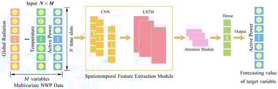 - Qu, J.; Qian, Z.; Pei, Y. Day-ahead hourly photovoltaic power forecasting using attention-based CNN–LSTM neural network embedded with multiple relevant and target variables prediction pattern. Energy 2021, 232, 120996. [Google Scholar] [CrossRef]