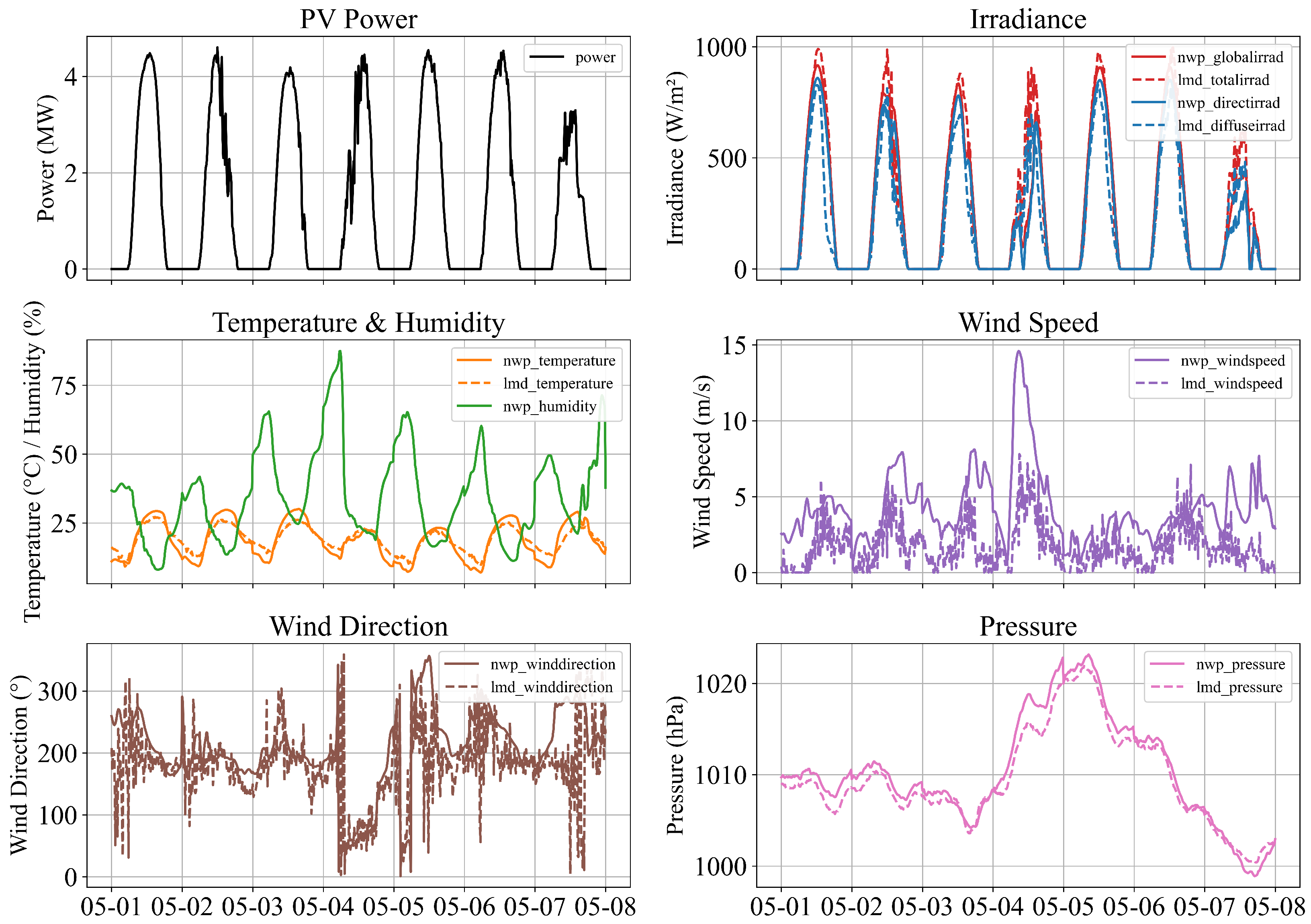 - Historical power only: A univariate baseline model that uses only past PV power measurements.