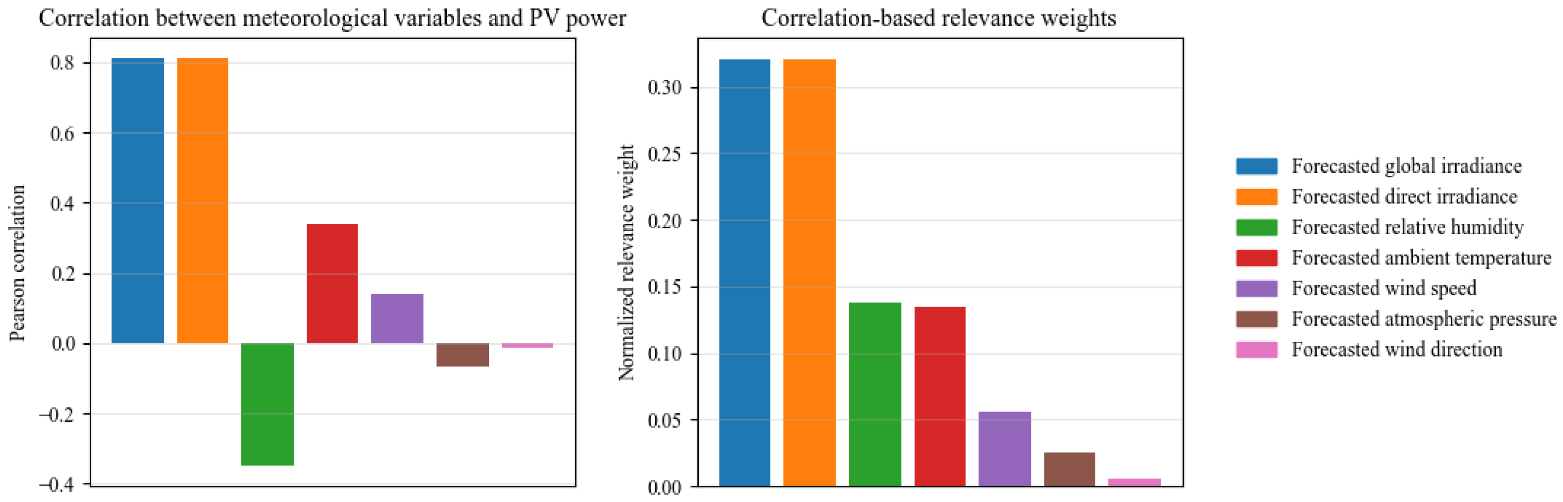 - Khan, Z.A.; Hussain, T.; Baik, S.W. Dual stream network with attention mechanism for photovoltaic power forecasting. Appl. Energy 2023, 338, 120916. [Google Scholar] [CrossRef]