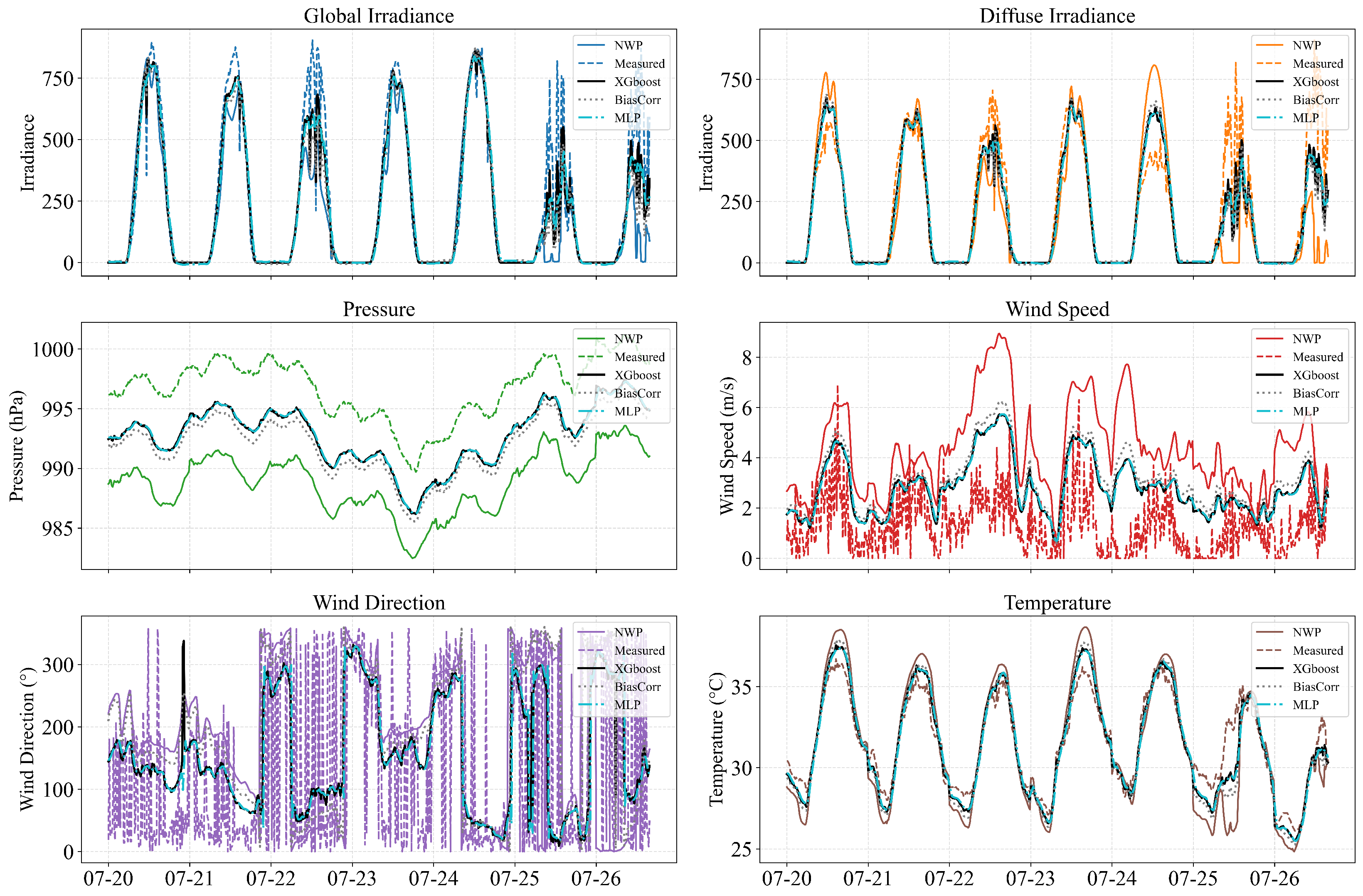- Historical power + original NWP: A multivariate forecasting model that incorporates raw NWP variables.