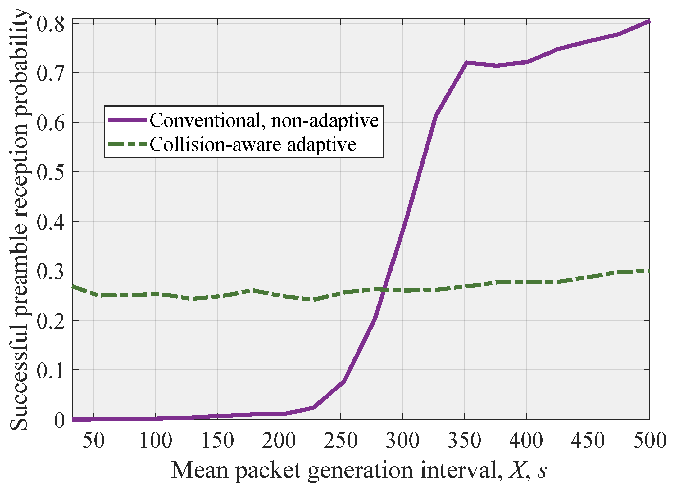 Figure 8. Successful preamble reception probability for considered modes.