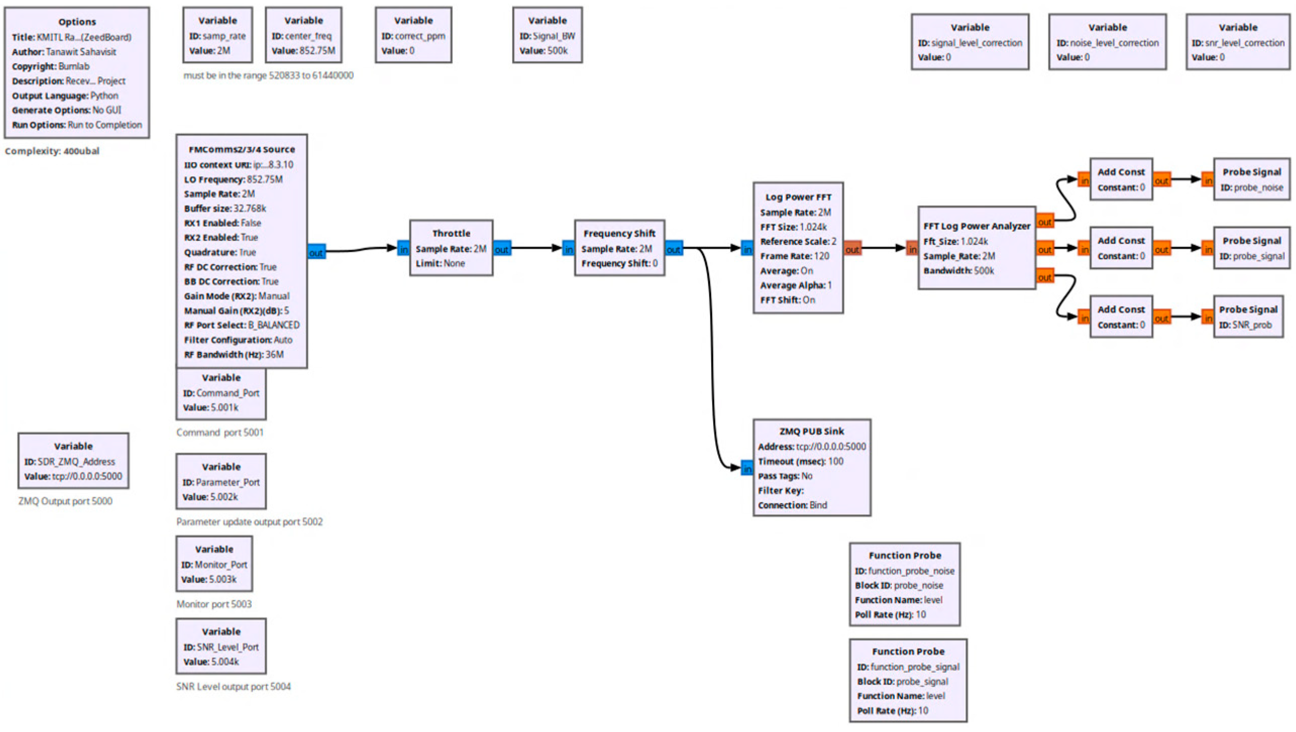 GNU Radio software for SNR computation and signal processing.